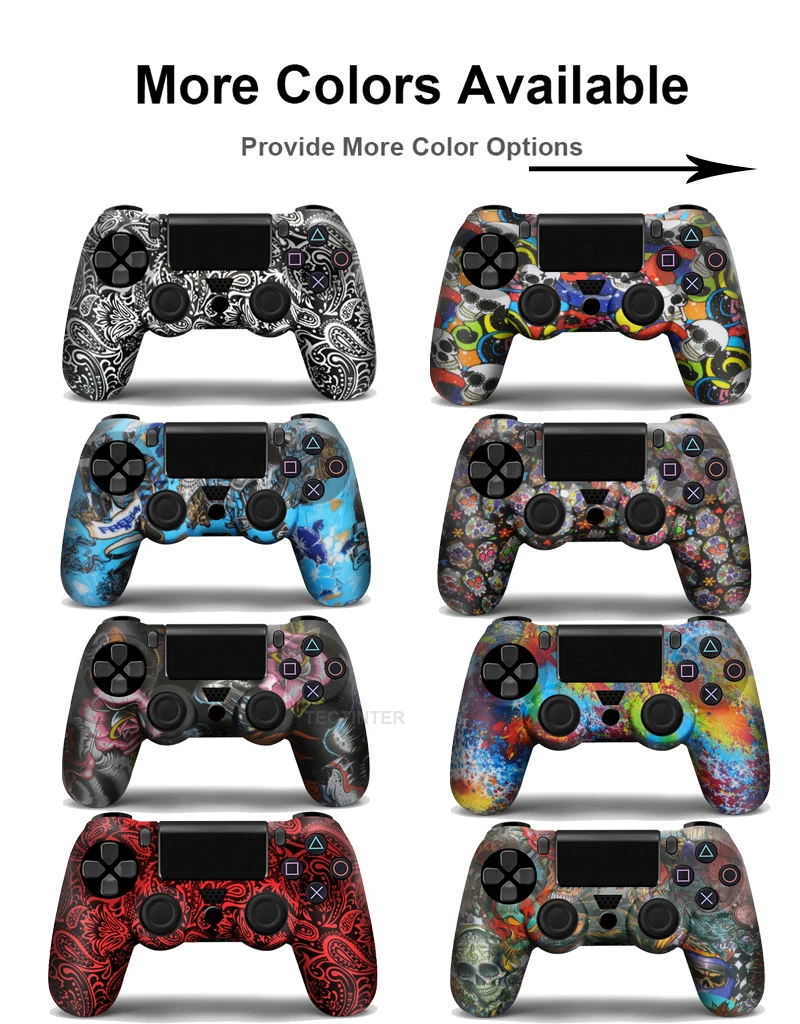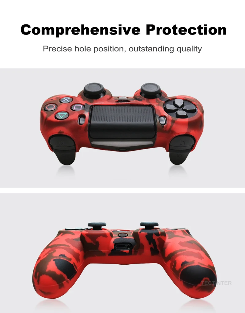 충격, 긁힘으로 인한 PS4 컨트롤러 손상을 방지합니다. 실리콘 마찰은 편안한 그립력을 제공하고 게임 플레이 중 미끄러짐을 방지하며 땀이 많은 손을 걱정하지 않습니다. 설치 및 제거가 매우 쉽고 PS4 컨트롤러에 완벽하게 맞으며 기능에 영향을 미치지 않습니다. 물 전송 인쇄 기술 PS4 컨트롤러의 위장, 더 많은 패션을 찾습니다.
