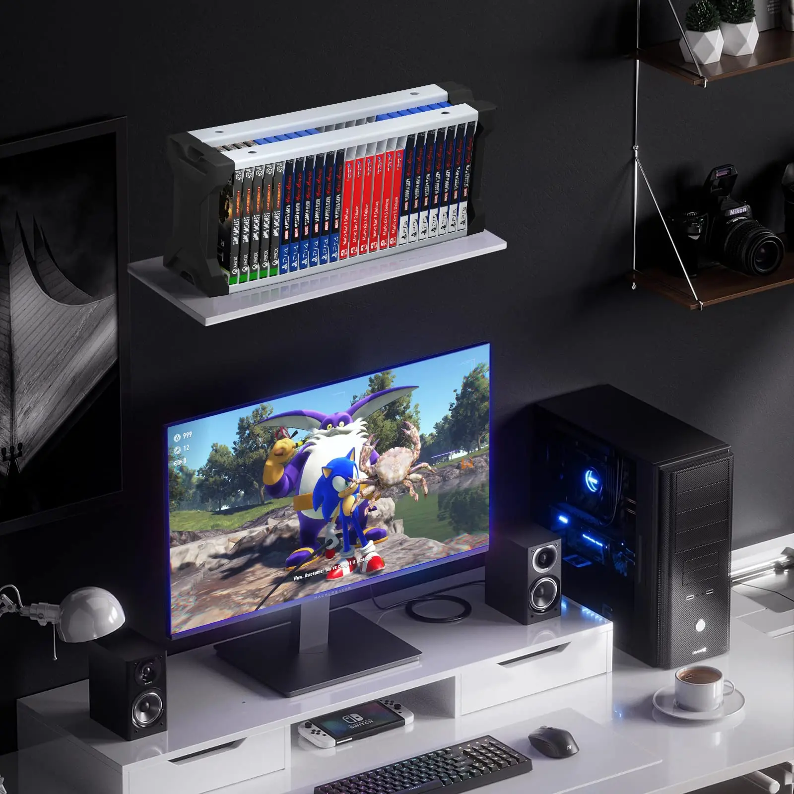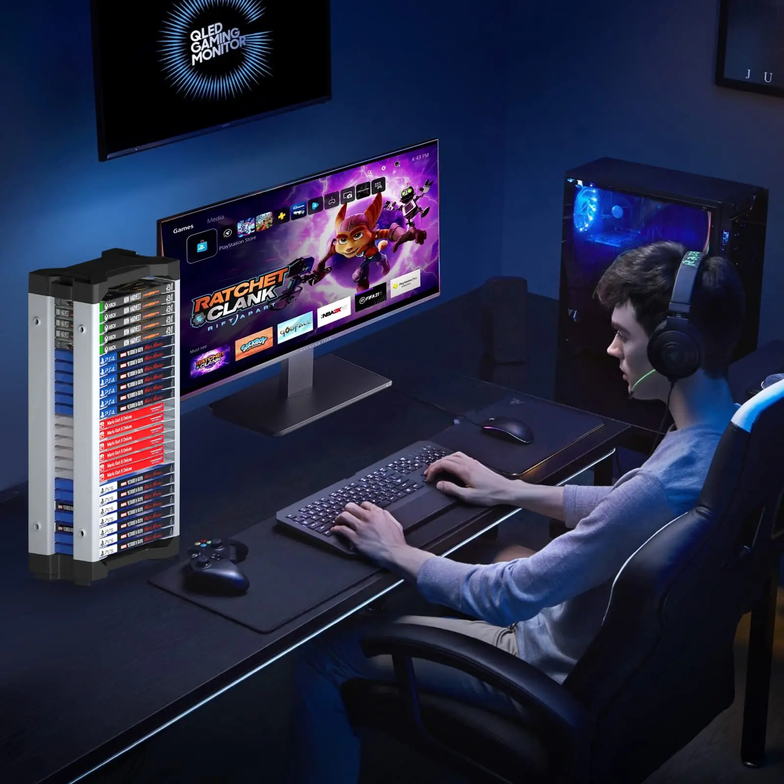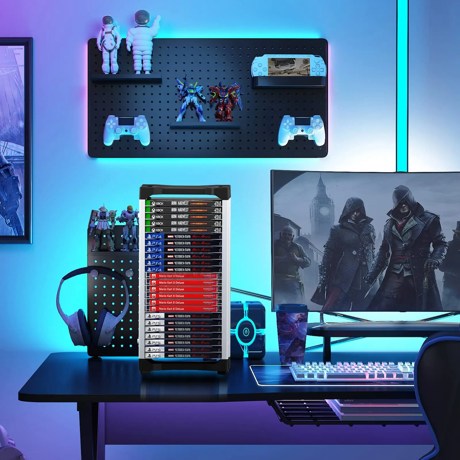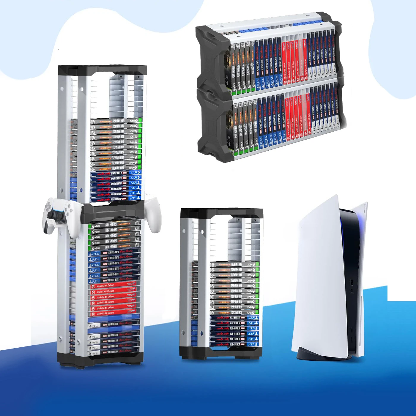 게임 더블 레이어 스토리지 박스 컨트롤러 거치대 포함 PS5 PS4 닌텐도 스위치 디스크 선반 Xbox 시리즈 X