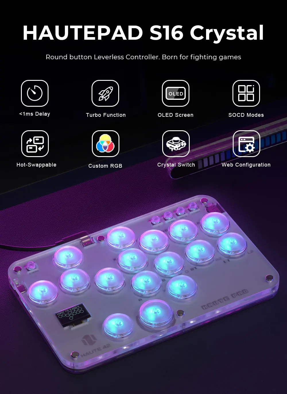 PC/PS4/PS5/스위치 아케이드 컨트롤러 키보드 게임용 Haute42 조이스틱 파이팅 스틱 아케이드 미니 히트 박스 레버리스 컨트롤러