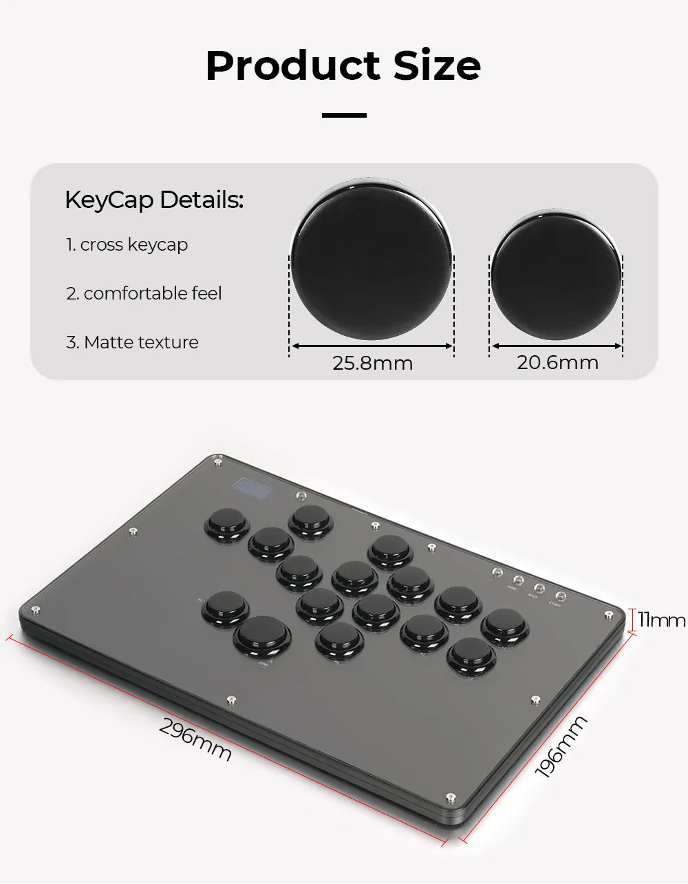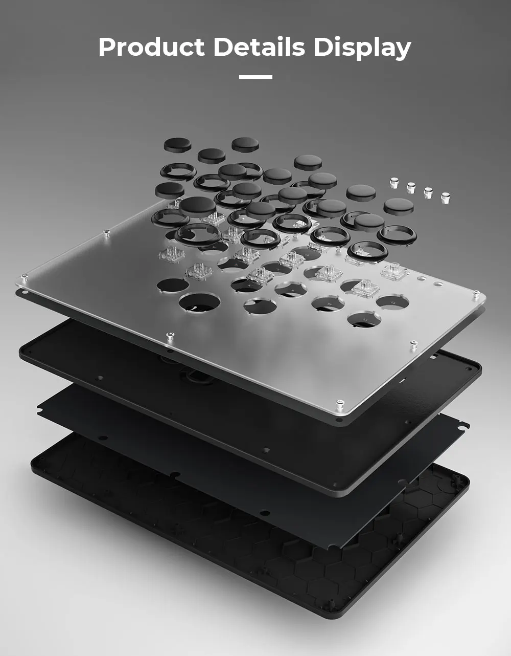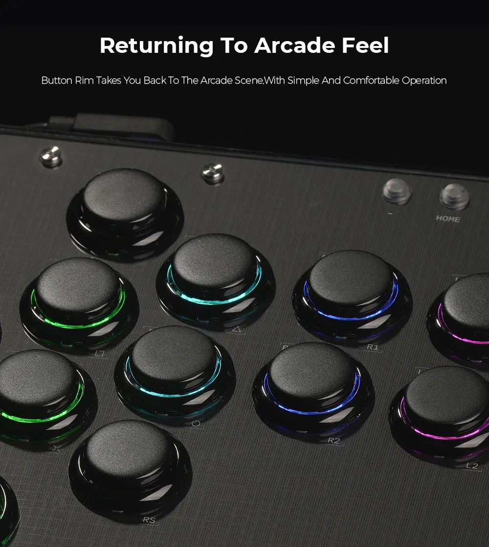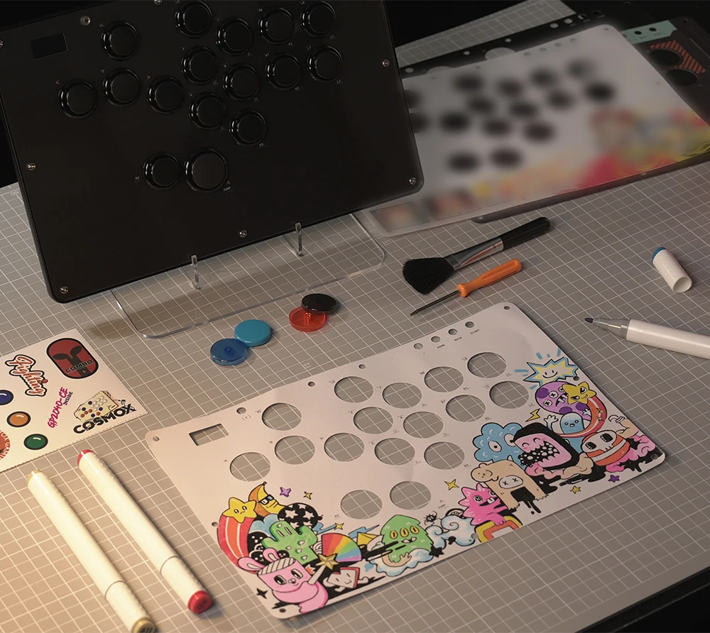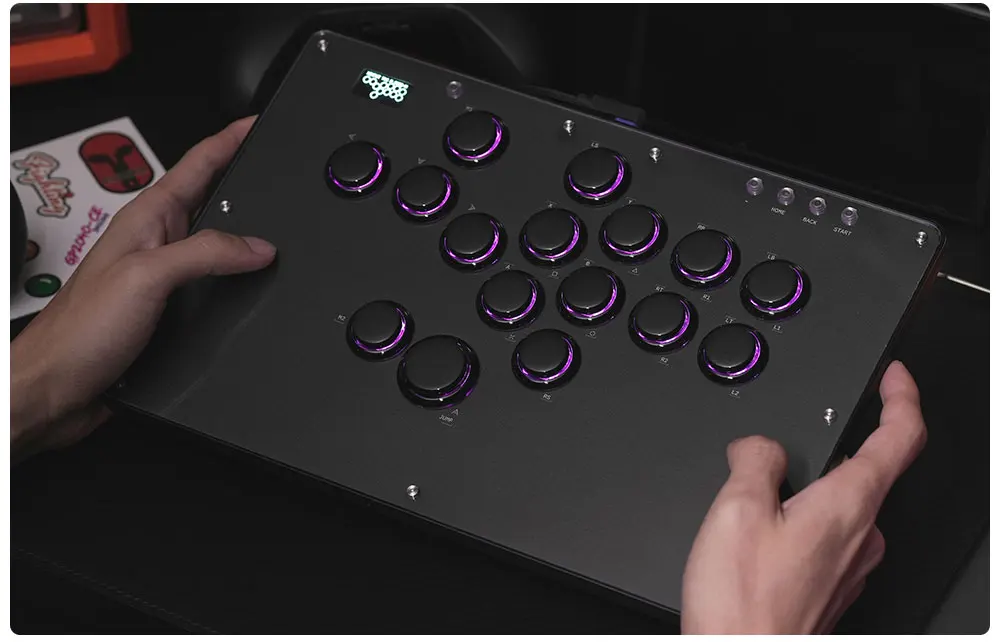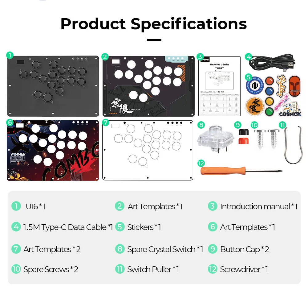 U16 은 가볍고 얇은 PC 소재를 채택합니다. 컨트롤러에는 레트로 아케이드 느낌과 RGB 조명 효과가있는 버튼 림이 있습니다. 이번에 우리 제품에는 4 개의 DIY 패널 용지가 있으며 플레이어는 빈 패널에 낙서를 하여 자신 만의 히트 박스 컨트롤러를 만들 수 있습니다!