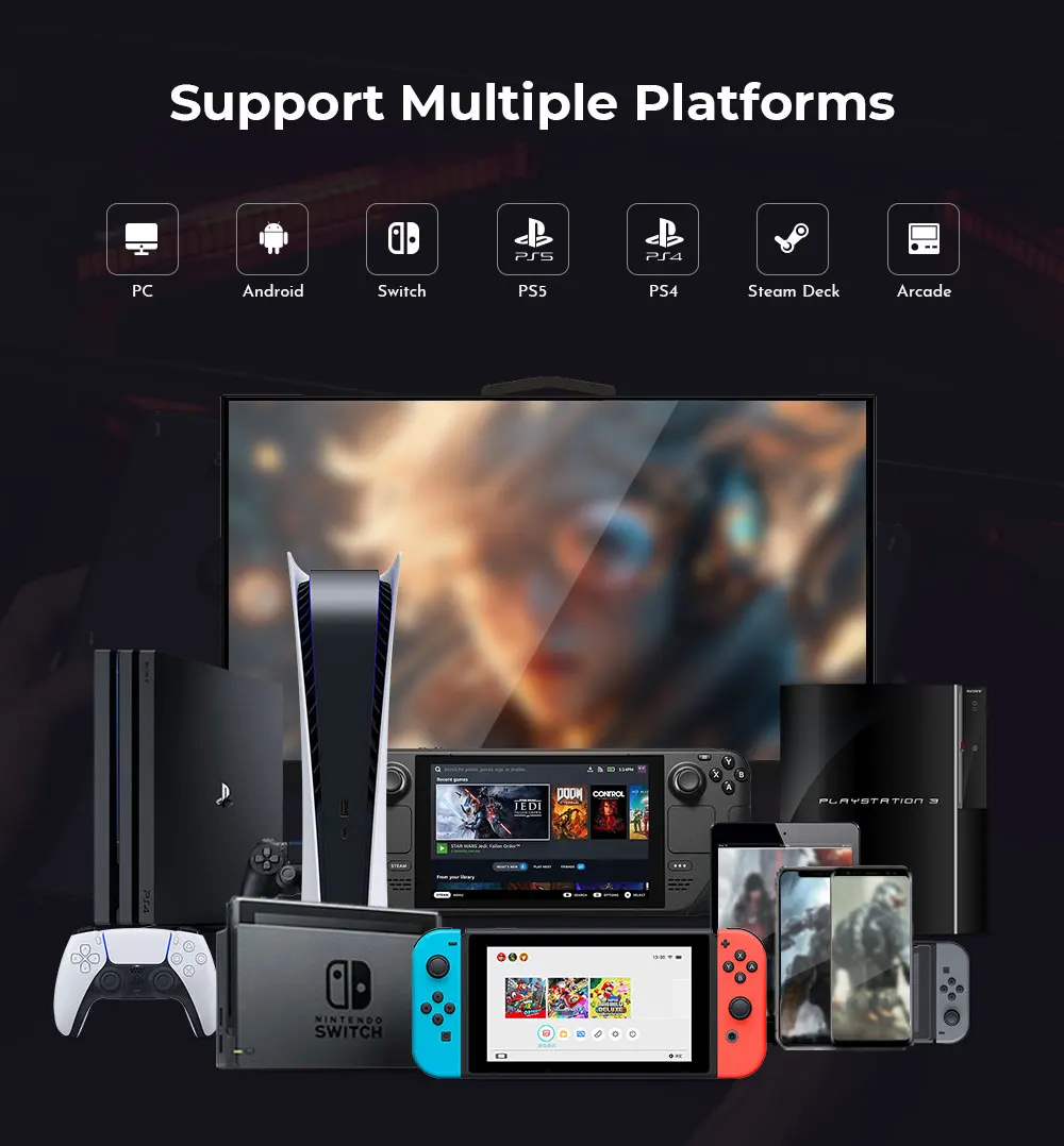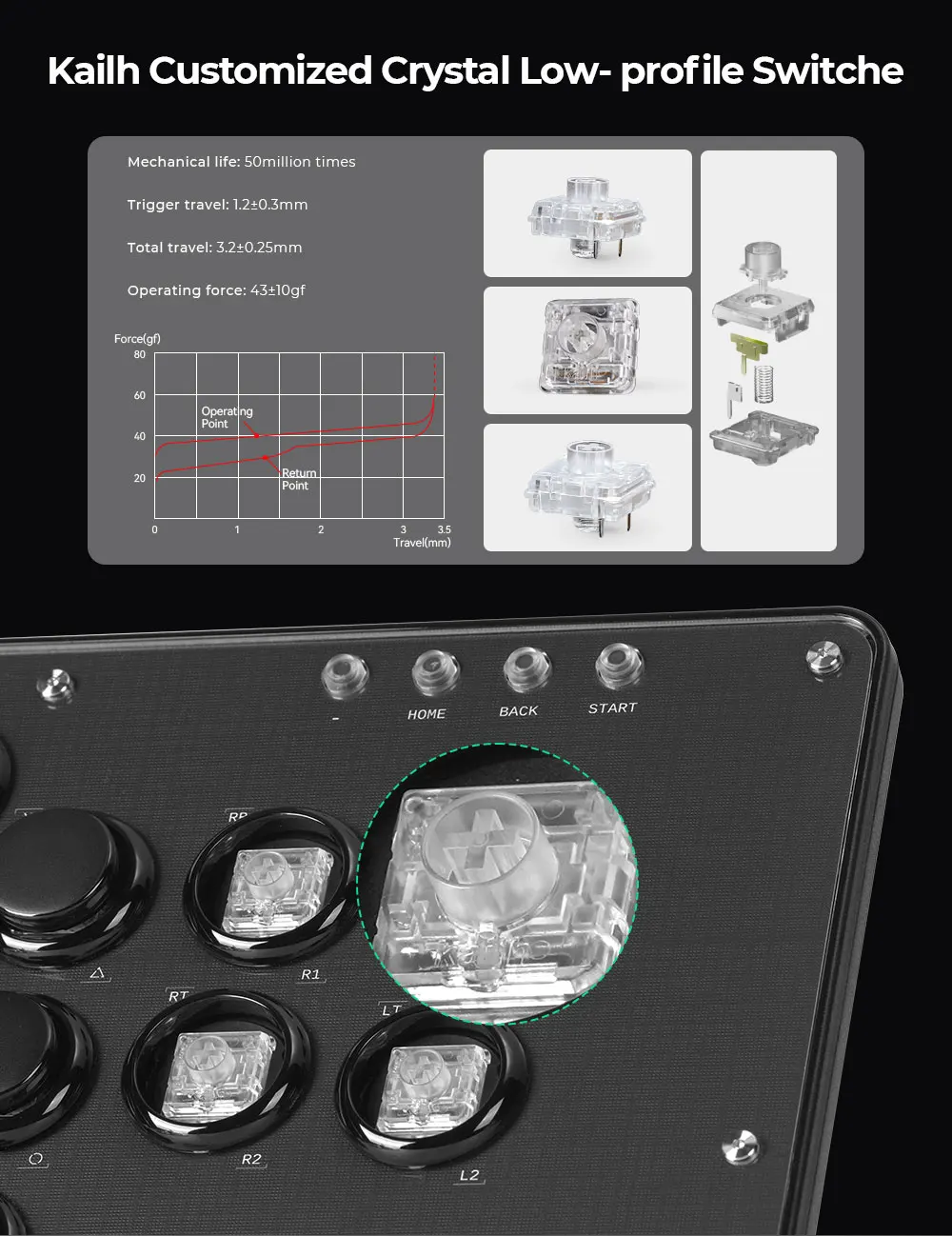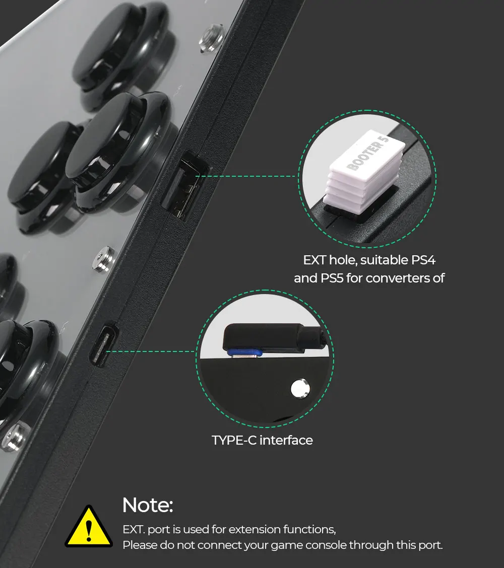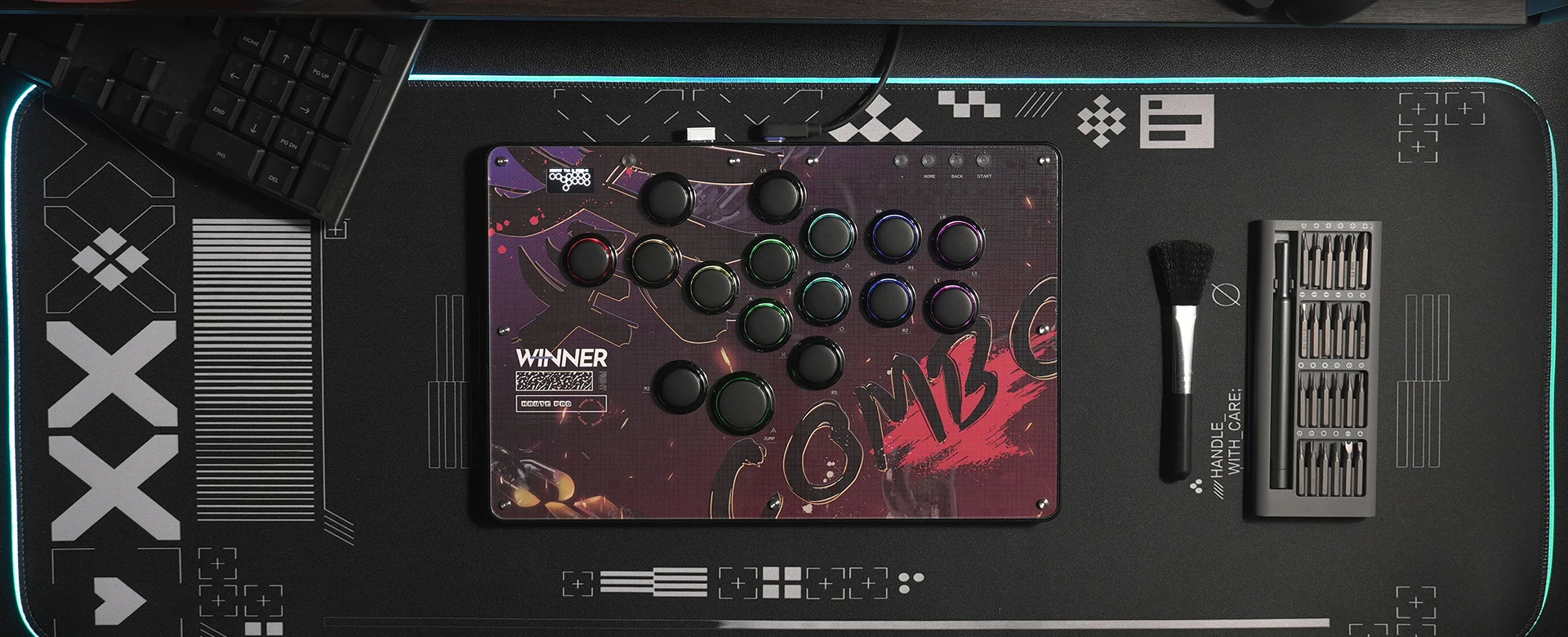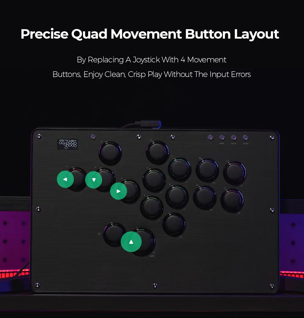 U16 은 가볍고 얇은 PC 소재를 채택합니다. 컨트롤러에는 레트로 아케이드 느낌과 RGB 조명 효과가있는 버튼 림이 있습니다. 이번에 우리 제품에는 4 개의 DIY 패널 용지가 있으며 플레이어는 빈 패널에 낙서를 하여 자신 만의 히트 박스 컨트롤러를 만들 수 있습니다!