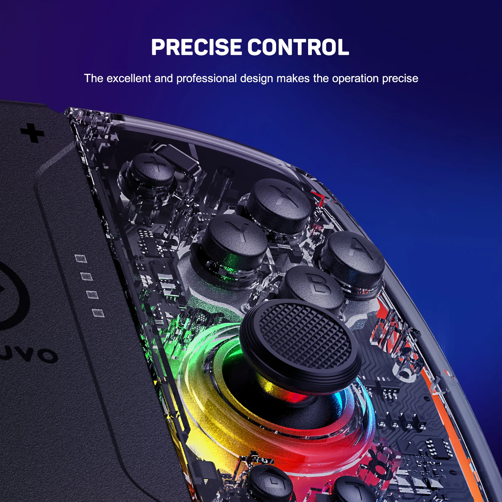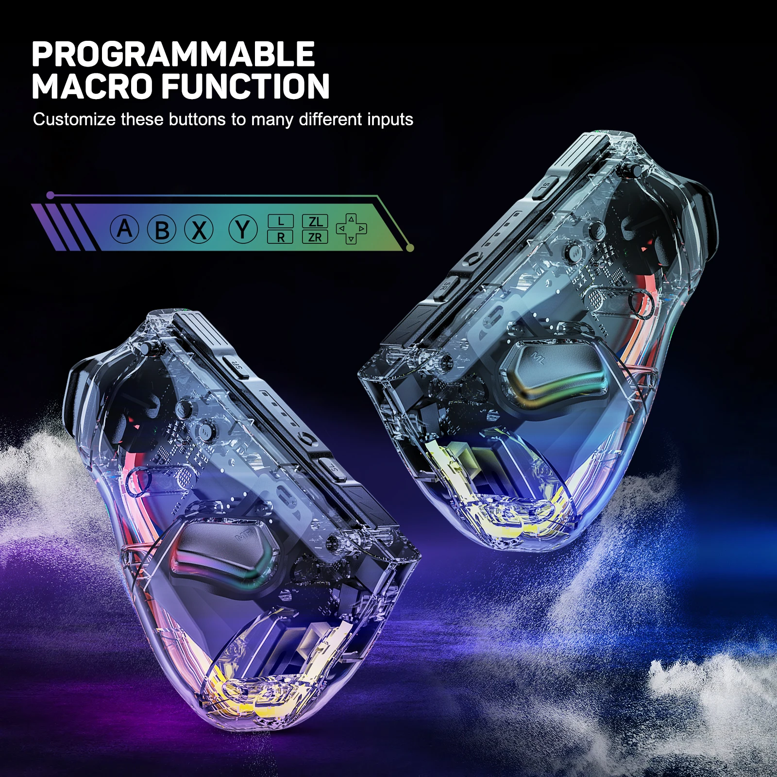 LinYuvo KS40 투명 스타일 무선 조이 패드 스위치 NS OLED용 8 색 LED 라이트용 터보 기능 컨트롤러 조이스