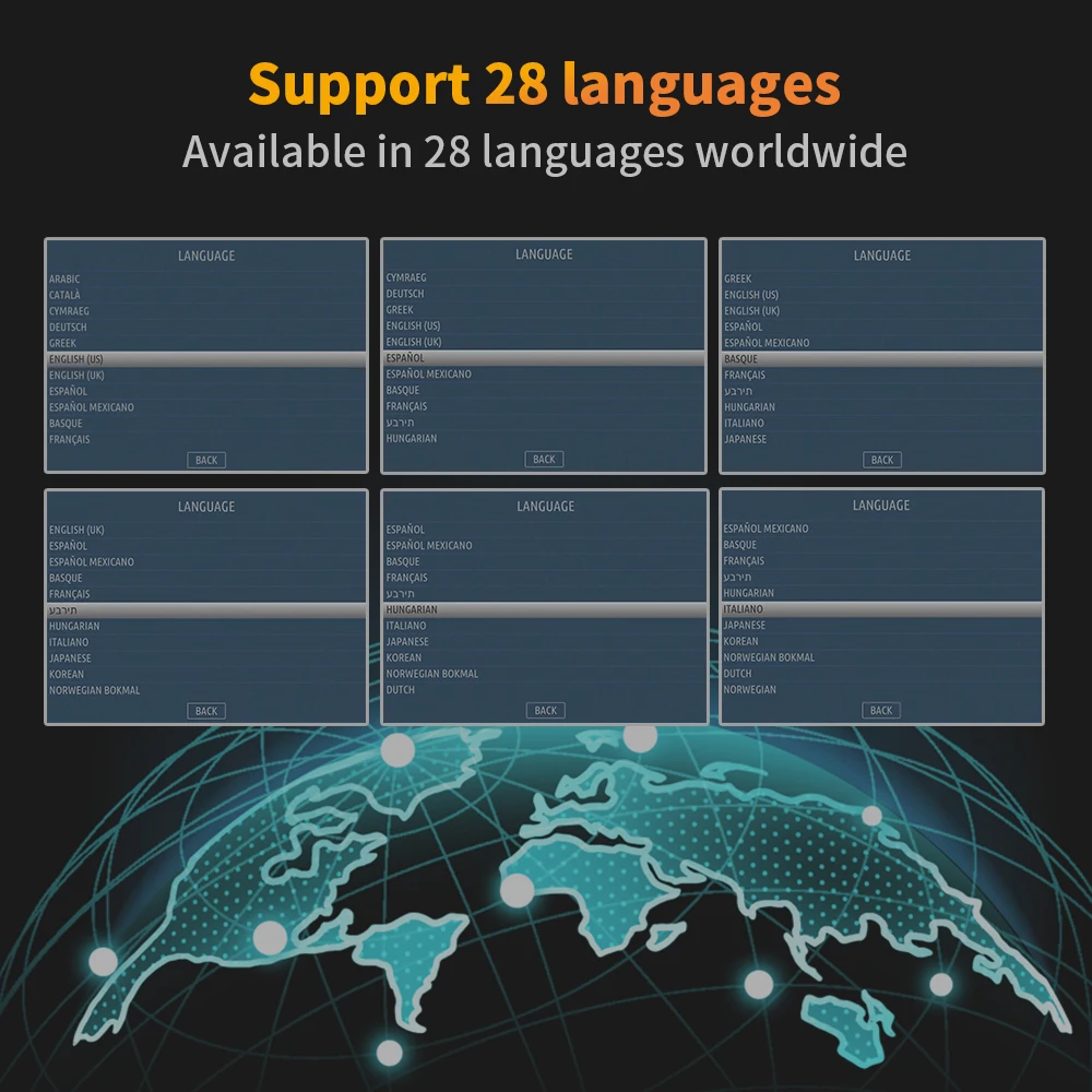 콘솔 gt 킹 시스템의 새로운 세대는 영어, 프랑스어, 포르투갈, 한국어, 독일어, 스페인어, 폴란드어, 러시아어, 일본어 및 기타 20 개 이상의 언어를 지원합니다. 당신은 당신에게 더 나은 게임 경험을 가지고 국가에 따라 언어를 조정할 수 있습니다.