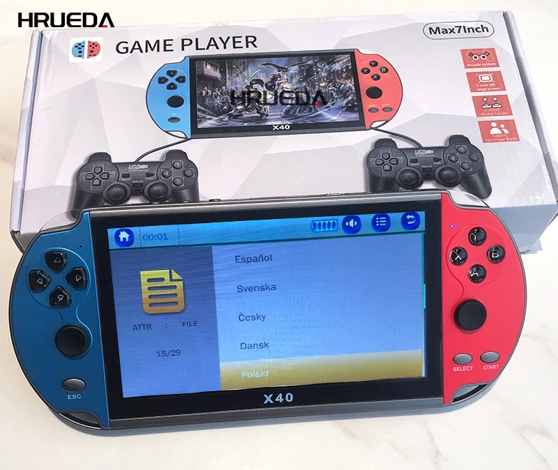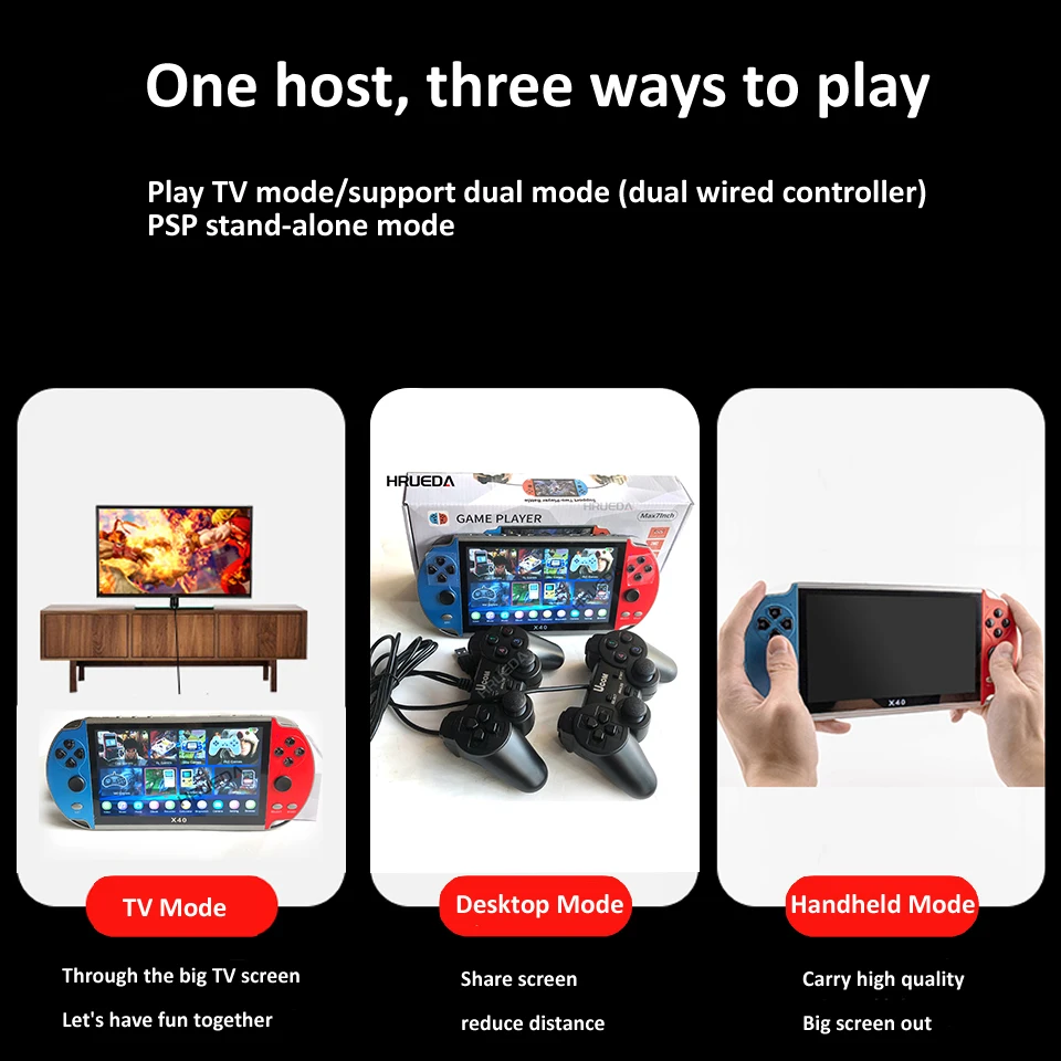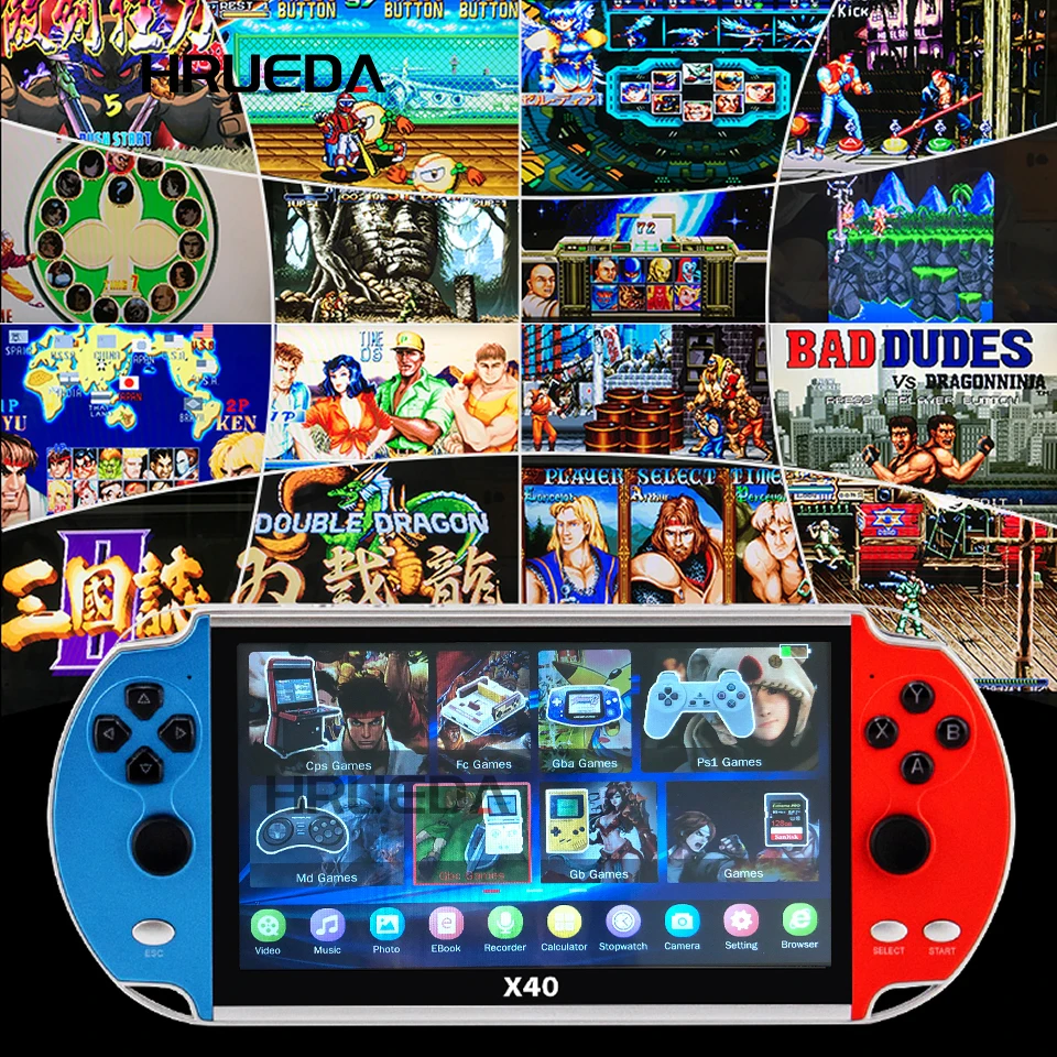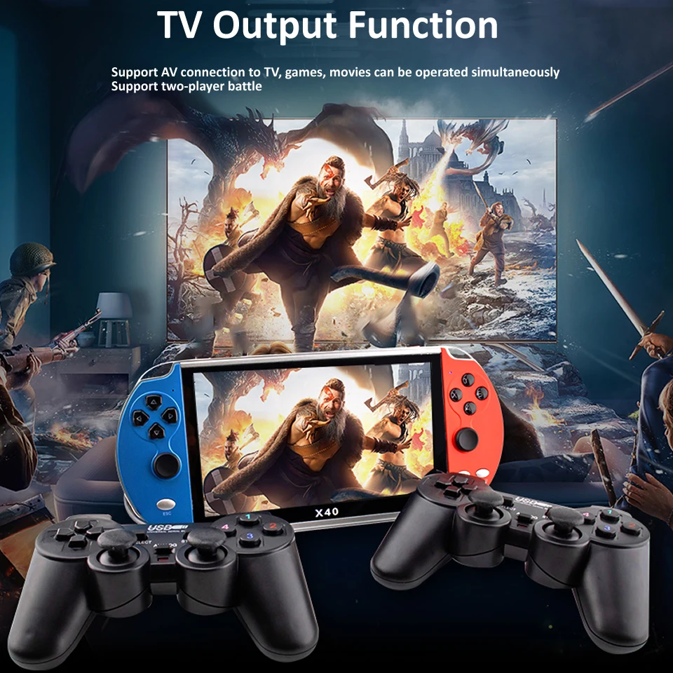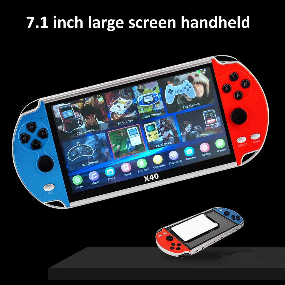 신제품 X40 핸드헬드 게임 콘솔, 7.1 인치 내장 16G 더블 로커 휴대용 FC 레트로 PSP 더블 비디오 게임 콘솔 10000 게임