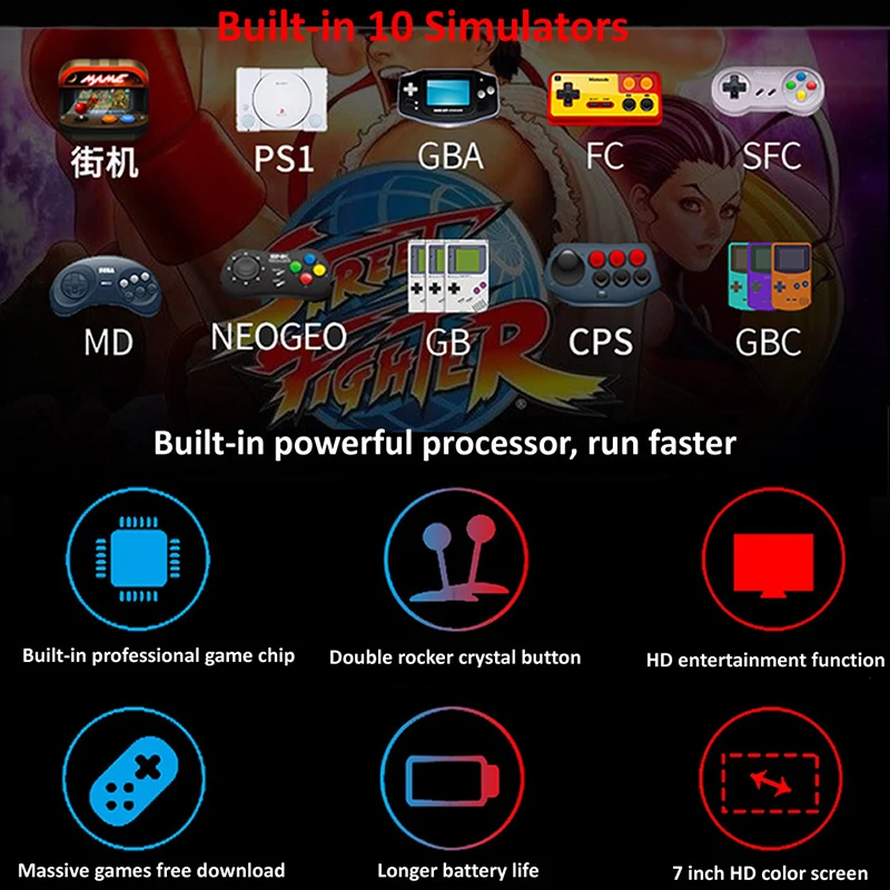 게임 형식: MAME/GBA/GBC/GB/NES/SFC/FC/SMD/MD와 같은 10 개의 에뮬레이터 지원