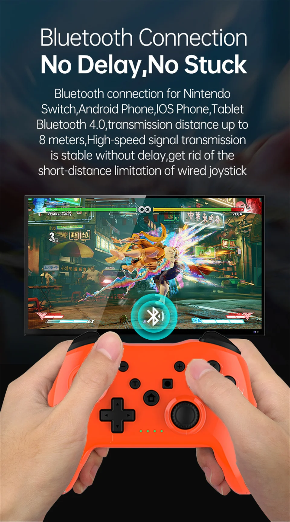 블루투스 연결 닌텐도 스위치, 안드로이드 전화, lOS 전화, 태블릿 블루투스 4.0, 전송 거리 8 미터까지, 고속 신호 전송은 지체없이 안정적입니다, 유선 조이스틱의 단거리 제한 제거