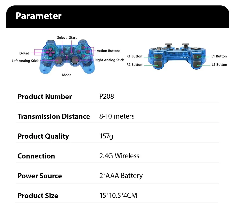 ? Sony PS2 콘솔과의 호환성:이 게임 패드는 Sony PS2 콘솔과 호환되도록 설계되어 원활한 게임 경험을 보장합니다.