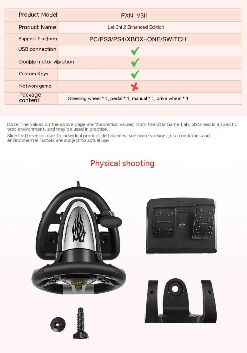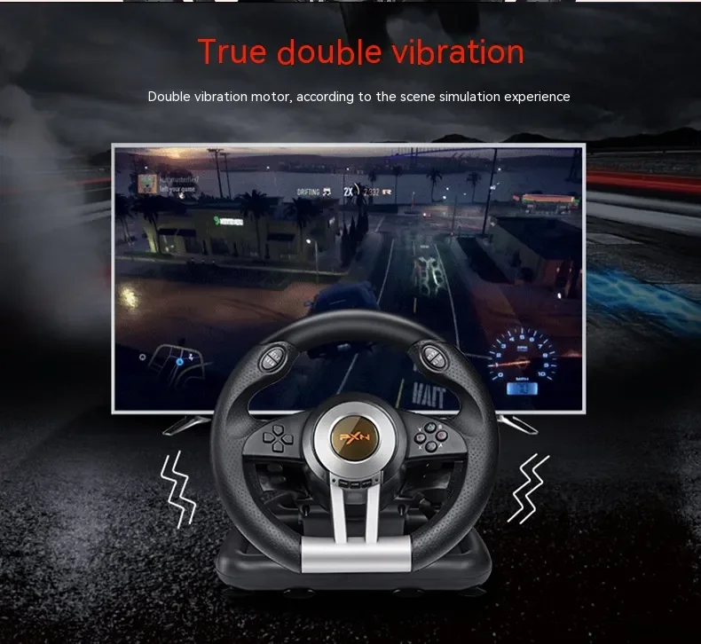이중 진동 모터가 스티어링 휠에 내장되어있어 더욱 사실적인 레이싱 경험을 제공합니다.