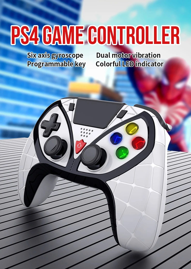 1) P4 콘솔을 인터페이스로 부팅 한 후 데이터 케이블을 콘솔의 USB 포트에 삽입하고 컨트롤러를 데이터 케이블에 연결하십시오. 그런 다음 게임 패드의 "HOME" 키를 누르면 LED가 켜집니다.