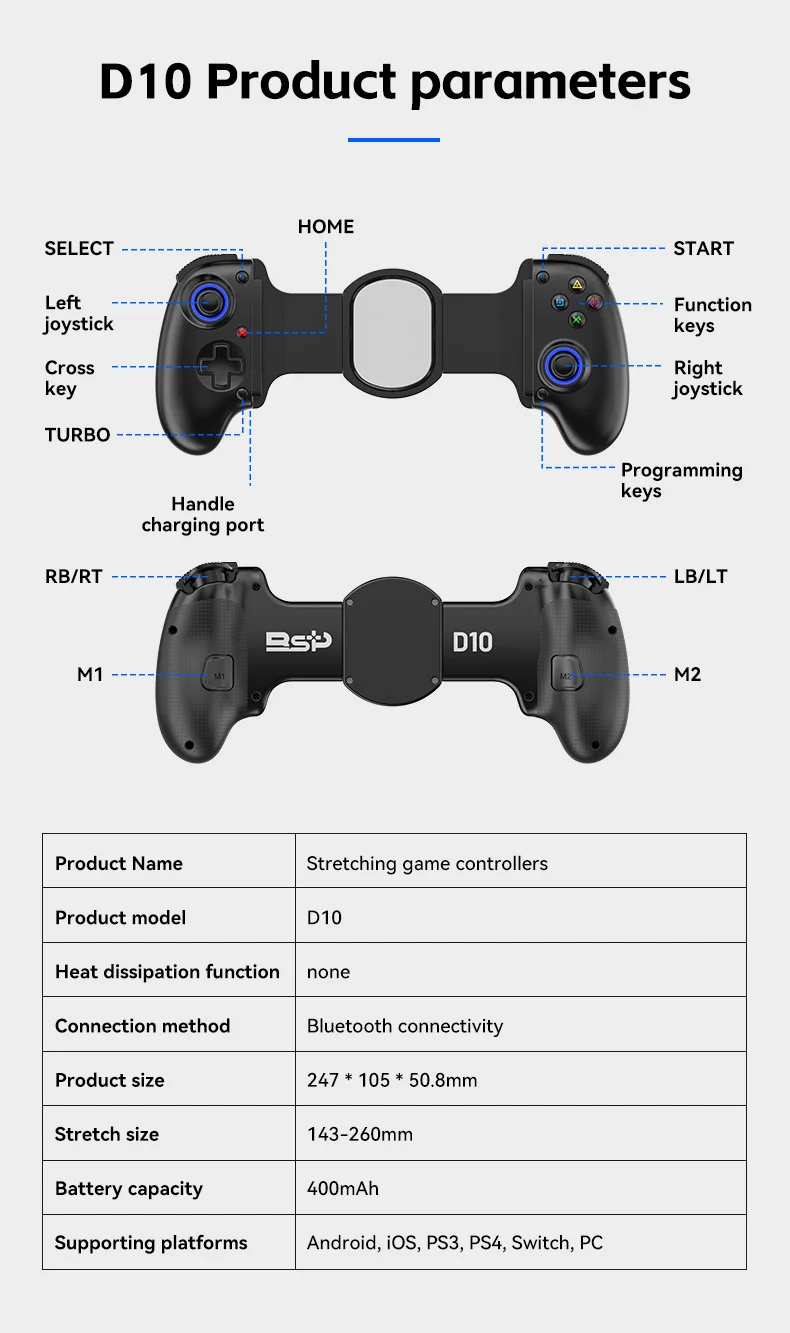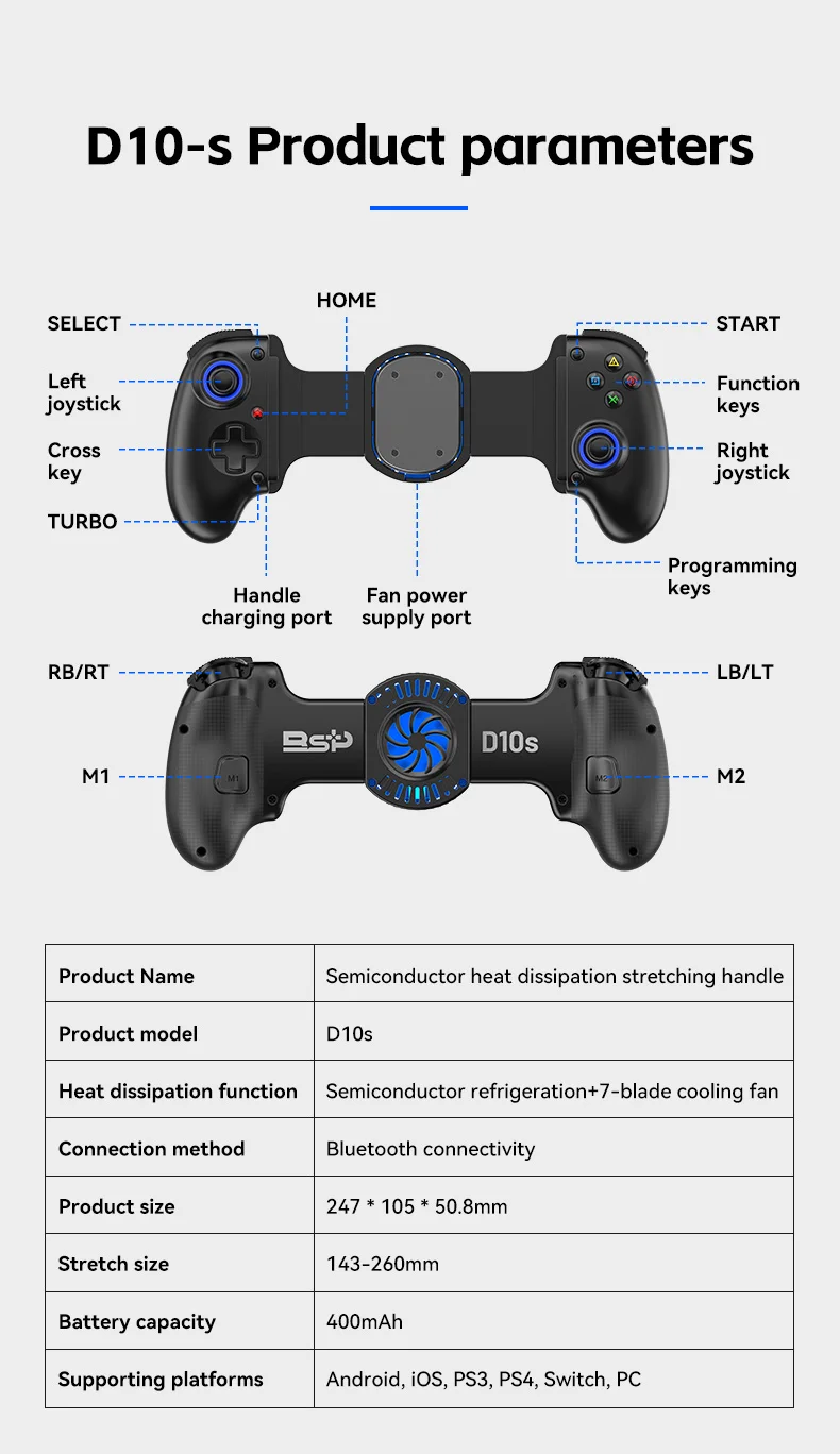 핫 BSP 확장 냉각 게임 컨트롤러 스위치 안드로이드 애플-ios 태블릿 PS4 XBOX 게임 패드 스트리밍용 D10