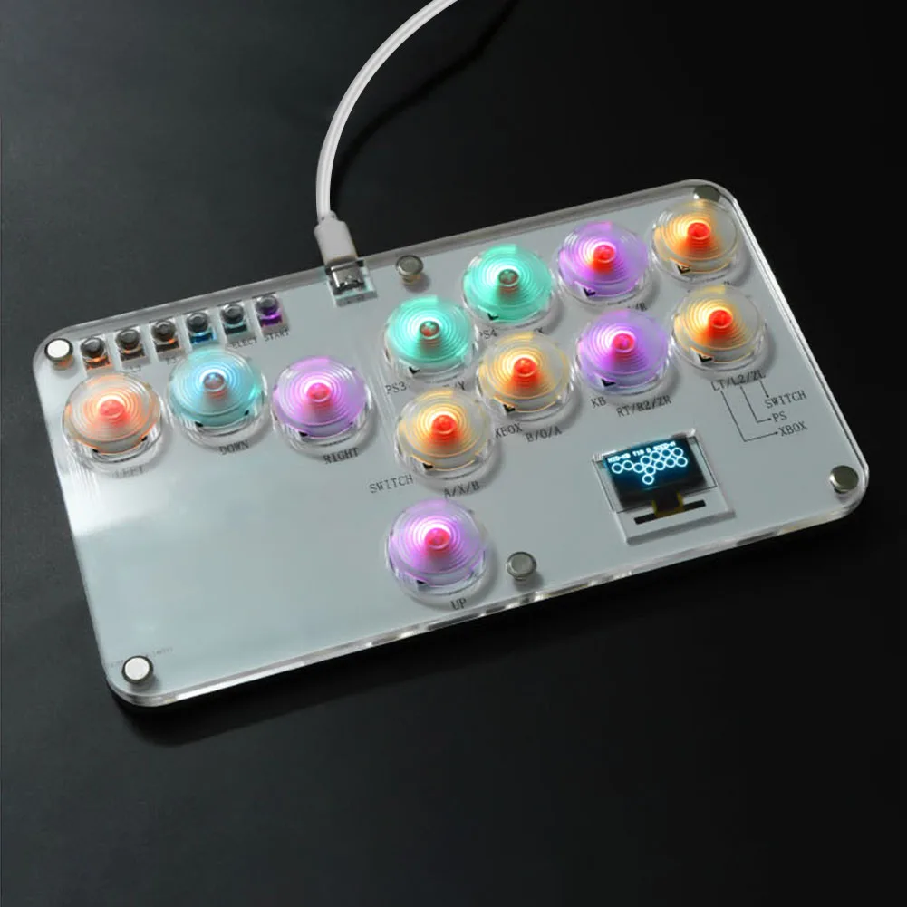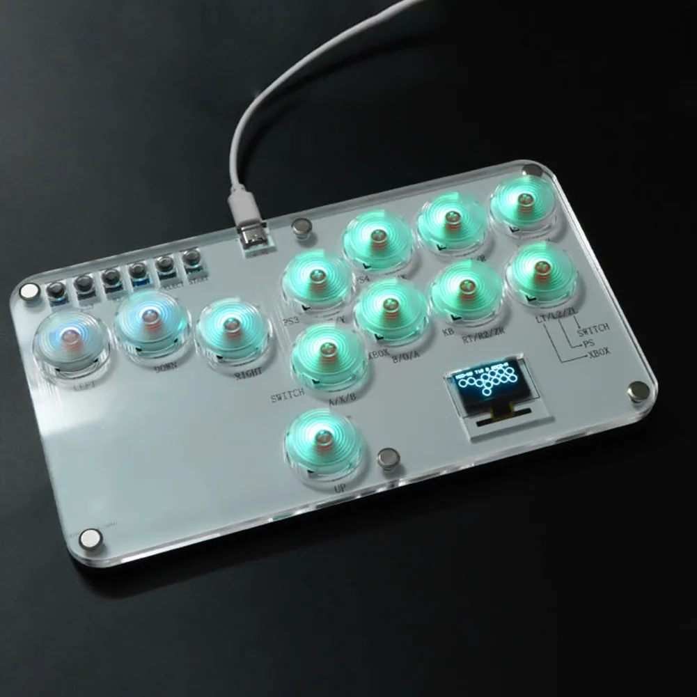 아케이드 조이스틱 12 키 올 버튼 레버리스 컨트롤러 파이트 스틱 지원 터보 및 핫 스왑 키보드 아케이드 스틱 컨트롤러 RGB 키보드 아케이드 스틱 컨트롤러 PC/PS4//스위치와 호환되는 아케이드 스틱 컨트롤러 특징: 1. 매우 낮은 대기 시간:우리의 12 키 아케이드 조이스틱은 뛰어난 장기적 느낌, 조용하고 부드러운 작동 및 낮은 동적 전력 소비를 위해 빨간색 로우 프로파일 스위치를 갖추고 있습니다. 아케이드 및 격투 게임에 적합한 매우 낮은 대기 시간을 경험하십시오. 2. 핫 스왑 가능 지원:레버리스 컨트롤러 파이트 스틱에는 핫 스왑 기술이 장착되어있어 납땜 문제없이 원하는 기계식 키를 쉽게 교체 할 수 있습니다. 컨트롤러 커스터마이징을 좋아하고 아케이드 게임 경험을 완전히 즐기는 게이머에게 이상적입니다! 3. 사용자 정의 가능한 RGB:키보드 아케이드 스틱 컨트롤러에는 멀티 컬러 LED 모듈이 내장되어있어 사용자 정의 가능한 RGB 조명 효과 (조명 모드/밝기/색상) 가 가능합니다. 구매자는 조명 테마를 개인화하여 컨트롤러를 더 시원하고 독특하게 보이게하면서 게임 분위기를 향상시킬 수 있습니다. 4. 터보 지원:TURBO 버튼을 누른 상태에서 빠른 발사를 위해 설정하려는 버튼을 누르면 연속 촬영을 구성 할 수 있습니다. 미니 격투 게임 아케이드 스틱을 사용하면 빠른 발사를 위해 최대 8 개의 다른 키를 설정할 수 있습니다. 분리 후에도 설정된 발사 속도는 저장되지만 빠른 발사 버튼 상태는 지워집니다. 5. 다중 입력:아케이드 파이트 스틱은 PC/Steam//PS4/스위치 및 기타 플랫폼과 호환됩니다. USB Type-C 유선 연결을 사용하여 다양한 컨트롤러와 액세서리를 지원하여 게임 설정과 싸우는 데 필수적인 장치입니다. 참고: 연결 세부 정보는 설명서를 참조하거나 고객 서비스에 문의하십시오. 사양: 원산지: 중국 본토 호환 브랜드/모델: PC 액세서리 유형: 게임 키보드 전기: 예 제품 색상: 투명 흰색 조명 효과: 조정 가능한 RGB 다채로운 조명 효과 키보드 축: 빨간색 축 짧은 축 제품 키 수: 12 키 연결 방법: USB Type-C 유선 사용 입력 모드: 호환 가능 - /DInput, 호환 가능스위치-스위치, 호환 가능XBOX - PC/Xinput, 키보드 KB-KEYBOARD 지원되는 플랫폼: 호환 가능PC//PS4/스위치/스팀 데이터 케이블: 1.5m TYPE-C 데이터 케이블 키보드 크기: 210x120x1 8mm/8.27x4.72x0.71inch 키보드 무게: 338g 설정 모드로 들어가는 방법: 1. 키보드의 "START" 키를 길게 누르고 TYPE-C 데이터 케이블을 연결하십시오. 2. 브라우저를 열고 주소 표시 줄에 "192.168.7.1" 을 입력하고 Enter 키를 누릅니다. 3. 설정 모드로 들어간 후 언어를 먼저 설정 한 다음 키 값, 모드, 조명 등을 설정하십시오. 참고: ![]()