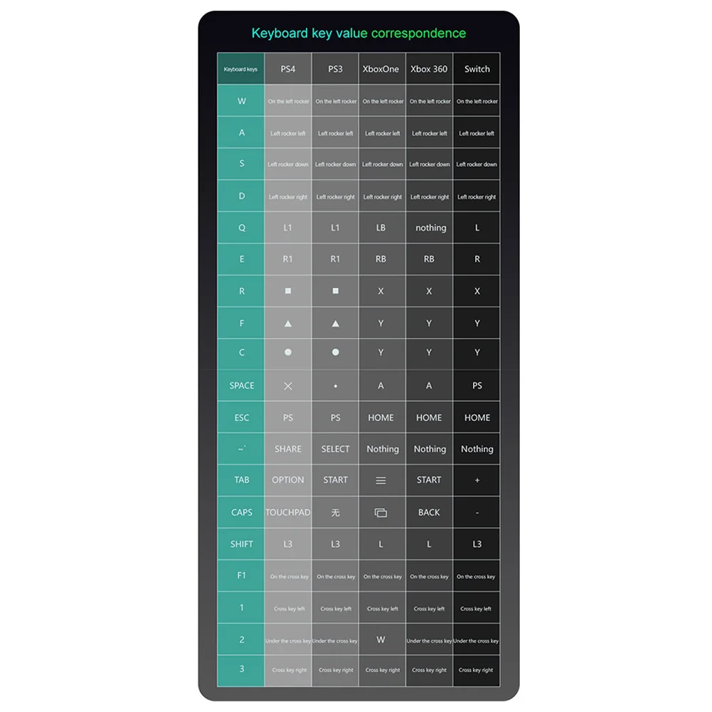 특징: 1. 시장에 90% USB 키보드 및 마우스를 지원합니다. 2. USB 허브 인터페이스가있는 키보드는 지원되지 않습니다. 3. XBOX ONE 및 PS4 콘솔의 경우 원래 컨트롤러에서 활성화해야합니다. 4. for Switch 호스트는 OTG 어댑터를 사용하여 USB 케이블에 연결해야합니다. 5. 컨트롤러 컨트롤 대신 키보드 및 마우스를 지원합니다. 6. 닌텐도 스위치, Xbox One, PS4 및 콘솔과 호환됩니다. 사양: 모델: G6L 색상: 블랙 연결 방법: 유선 입력 전원: DC 5V 2A 작동 전압: 부하가없는 20mA 제품 무게: 56g 제품 크기: 100X60X20mm/3.94X2.36X0.79" 패키지 무게: 98g 포장 크기: 130X90X53mm/5.12X3.54X2.09" 해당 장치: Xbox One/S/X 플레이 스테이션 4 (프로/슬림) PS 3 및 닌텐도 스위치 용 참고: 모니터 및 조명 효과가 다르기 때문에 항목의 실제 색상이 그림에 표시된 색상과 약간 다를 수 있습니다. 감사합니다! 수동 측정으로 인해 1-3mm 측정 편차를 허용하십시오.