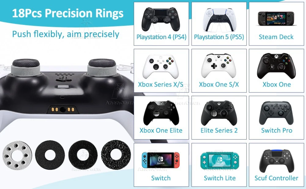 【친절】-조이스틱에 엄지 캡이 있으면 정밀 링을 설치하기 전에 제거하십시오. 이미지에 표시된 콘솔 및 게임은 그림 용도로만 사용되며 포함되지 않습니다.