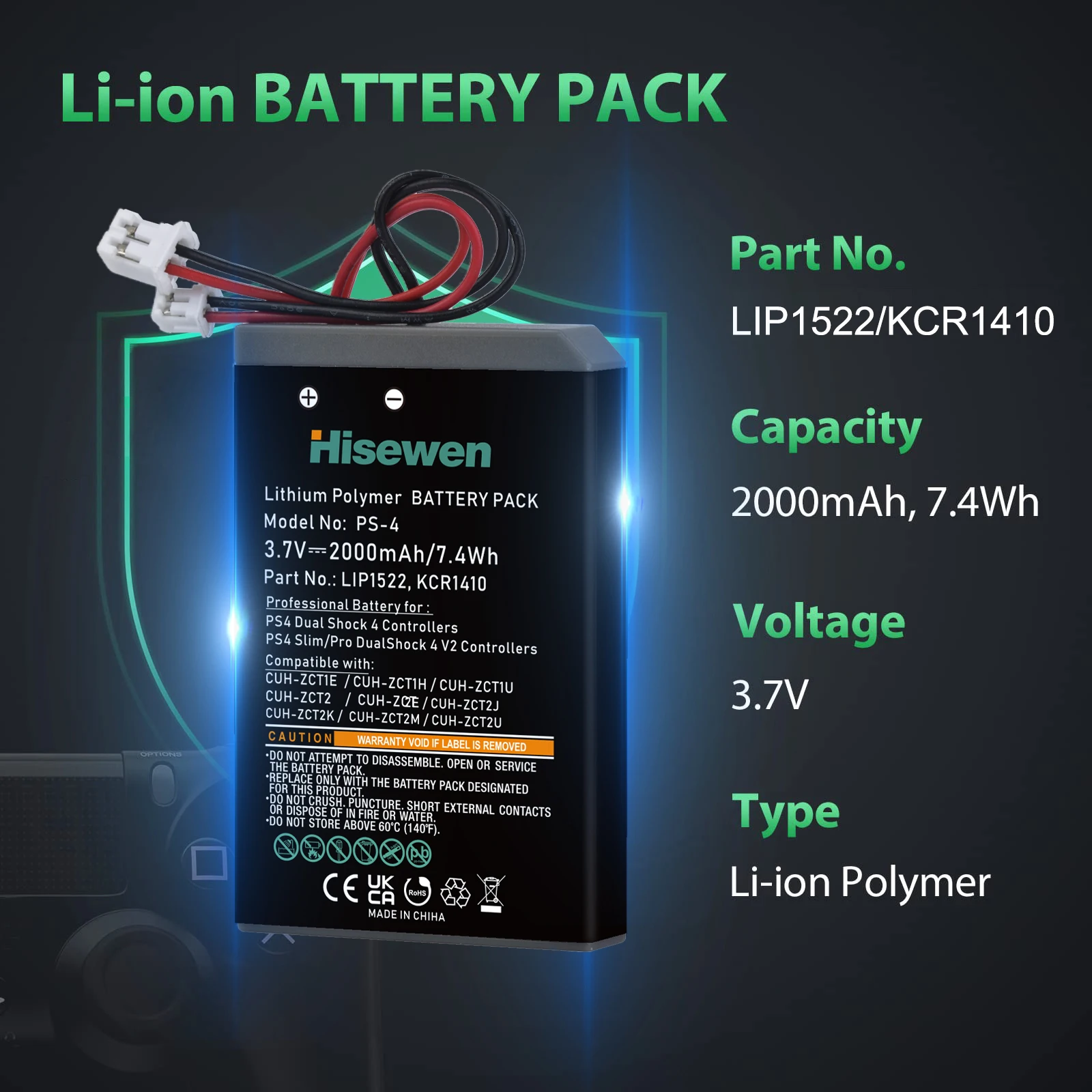 소니 플레이 스테이션 4 듀얼 쇼크 4 V1 V2 컨트롤러 CUH-ZCT2 CUH-ZCT1E 등을위한 Hisewen 2000mAh PS4 배터리.