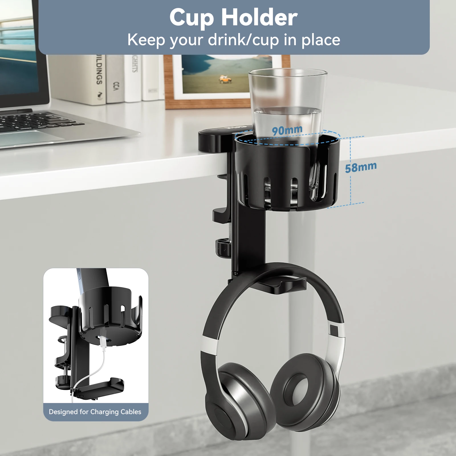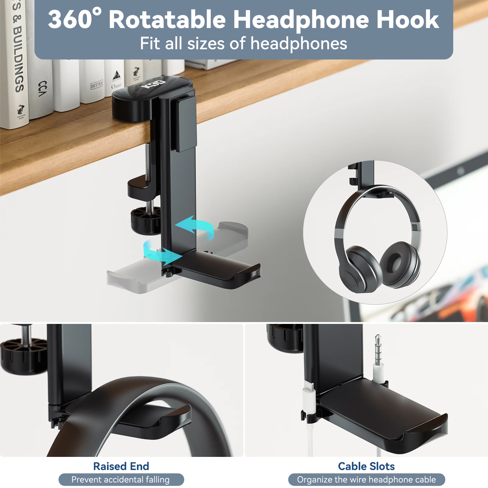 360 ° 회전 및 헤드폰 케이블 오거나이저-헤드폰 케이블을 잘 관리 할 수있는 헤드셋 케이블 오거나이저가있는 책상 아래 헤드폰 후크, 바탕 화면을 더 깔끔하게 만듭니다.