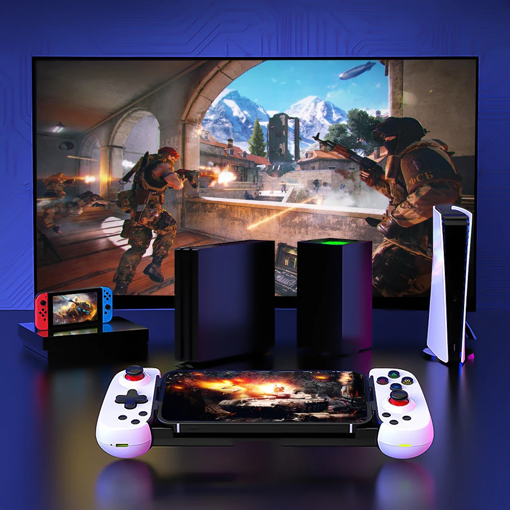 2. 어디서나 스트리밍 및 재생:확장 가능한 게임 콘솔 조이스틱은 앱 스트리밍 및 클라우드 게임에 적합하여 Xbox Game Pass, Steam Link, 달빛 등을 즐길 수 있습니다. Xbox, PS4, PS5 게임과 호환되는 무선 스트리밍을 경험하십시오. Android V3 매핑 + HID 듀얼 모드 전체 게임 호환성 및 Apple MFI/아케이드 게임 지원과 호환됩니다.
