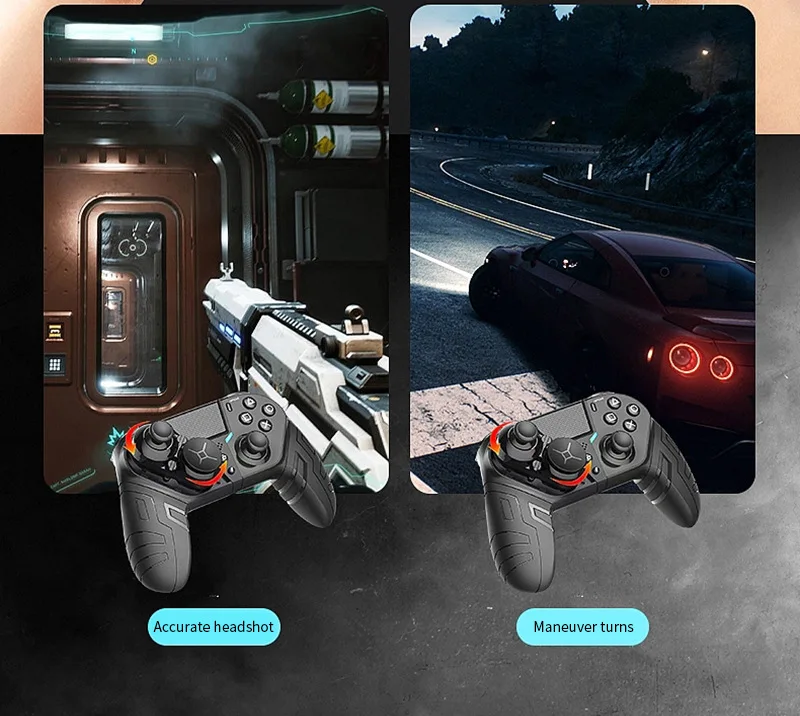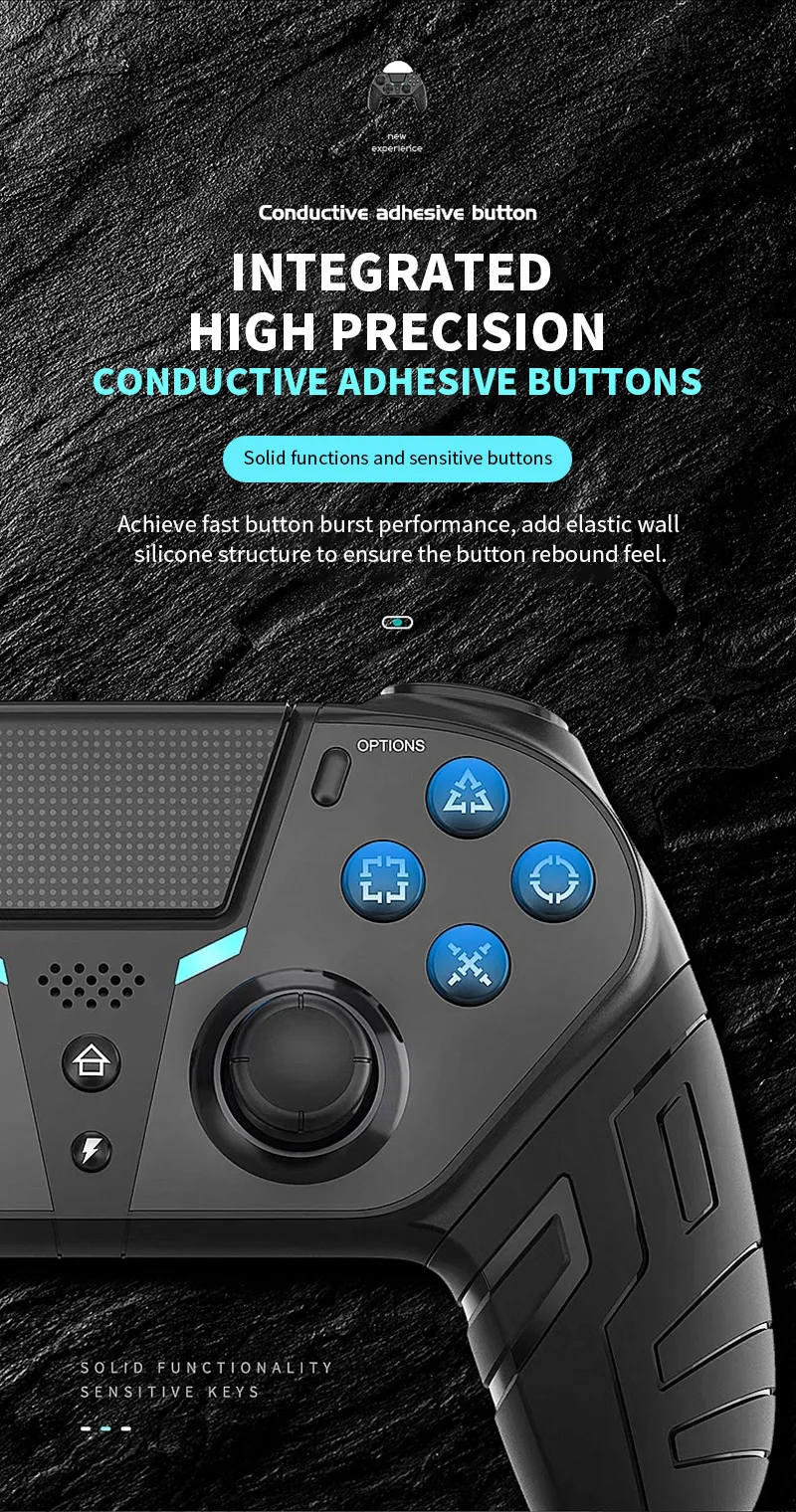 -이 무선 컨트롤러는 교체 가능한 실리콘 미끄럼 방지 핸들 커버, 선택할 수 있는 두 개의 다른 실리콘 핸들 커버가 제공됩니다. 게임 컨트롤러 내장 3.5mm 오디오 잭은 좋아하는 이어폰과 마이크를 연결할 수 있으며 게임을하거나 음악을들을 때 팀원과 통신 할 수 있습니다.