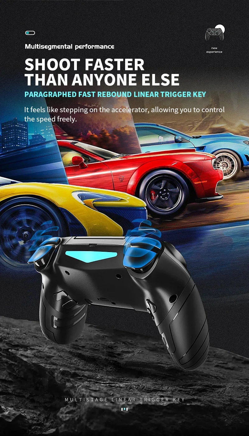 -PS4 컨트롤러 무선 버튼 (터보 버튼) + 모든 버튼의 경우 버튼의 TURBO 기능을 시작할 수 있습니다. 모든 버튼은 버스트 버튼으로 설정됩니다.
