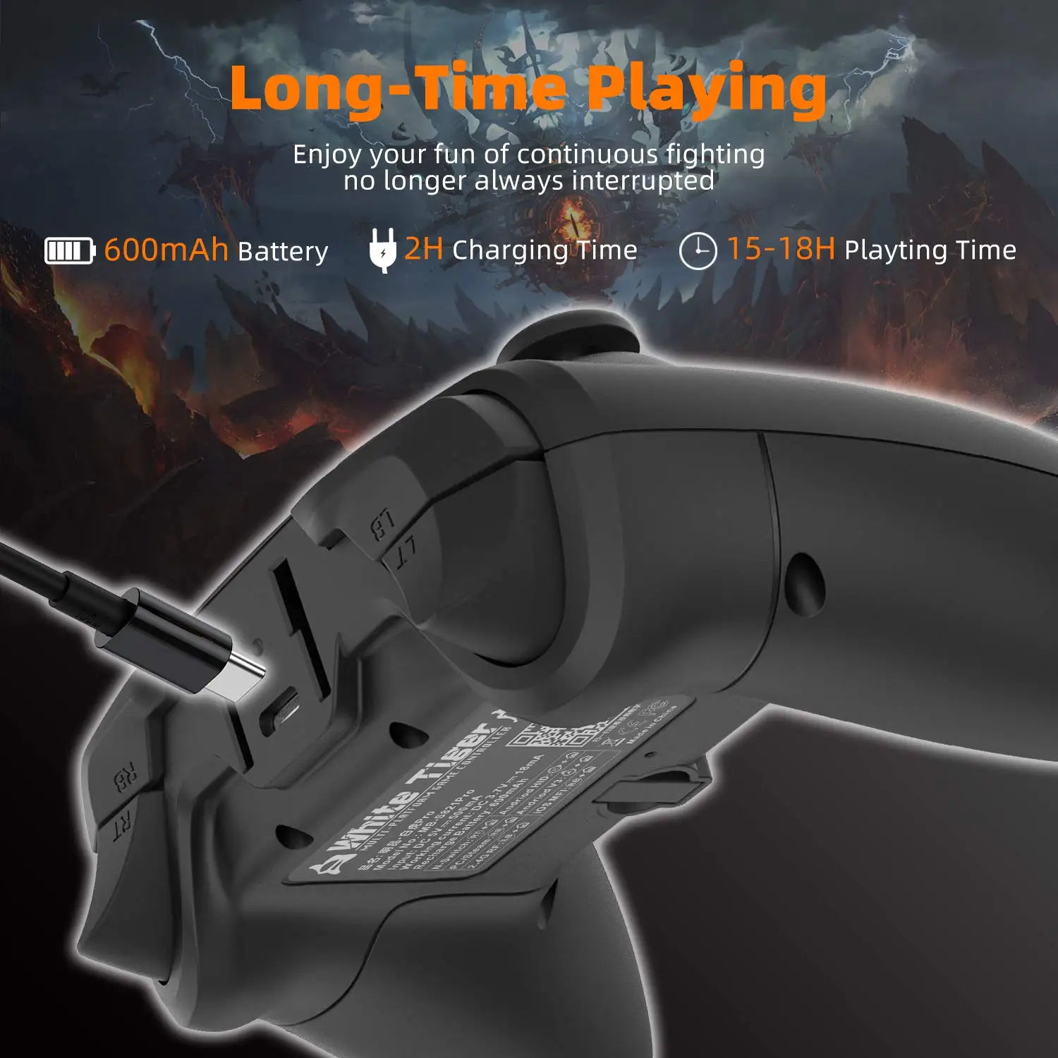 블루투스 5.2 연결: N 스위치/스위치 라이트/PS4//안드로이드 V3/안드로이드 HID/애플 iOS (MFI 게임) 등을 지원합니다.
