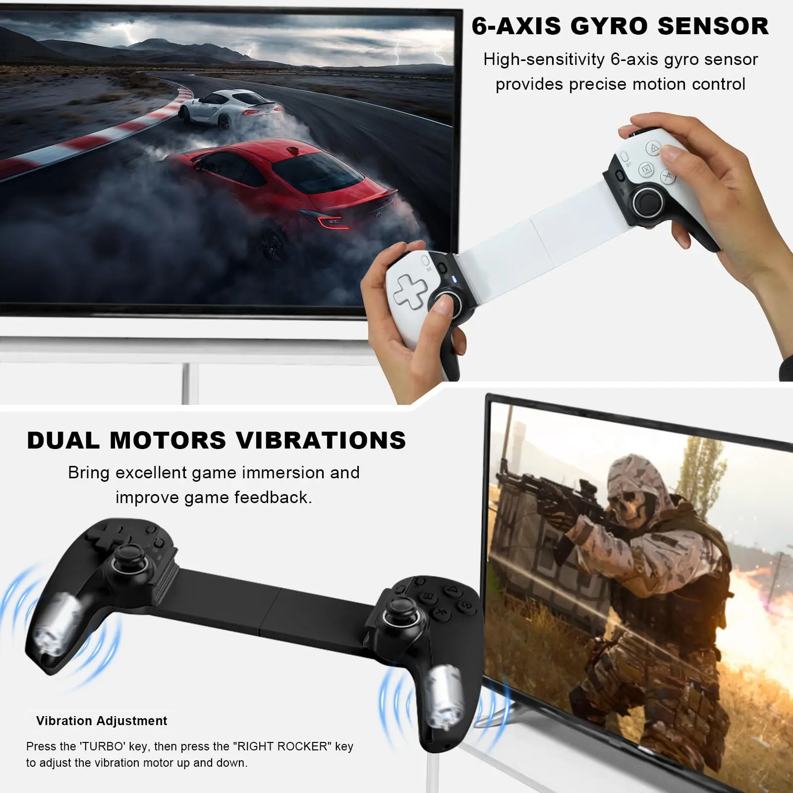 텔레스코픽 게임 컨트롤러 RGB 라이트 모바일 게임 패드 터보 6 축 자이로 진동 안드로이드 IOS PS4 스위