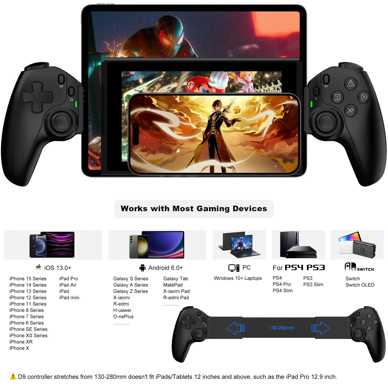 D9 는 130 ~ 280mm 장치와 호환되며 휴대 전화, 태블릿 및 스위치에 문제가 없습니다. 클램핑 위치의 실리콘 래핑 디자인은 마모로부터 장치를 보호 할 수 있습니다.