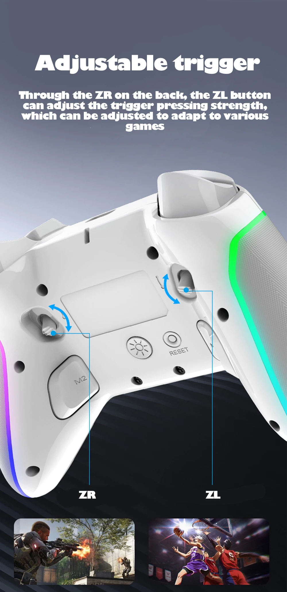 더 다양한 유형의 게임에 적응하기 위해 뒷면의 ZR/ZL 버튼을 통해 트리거 압력을 조정할 수 있습니다