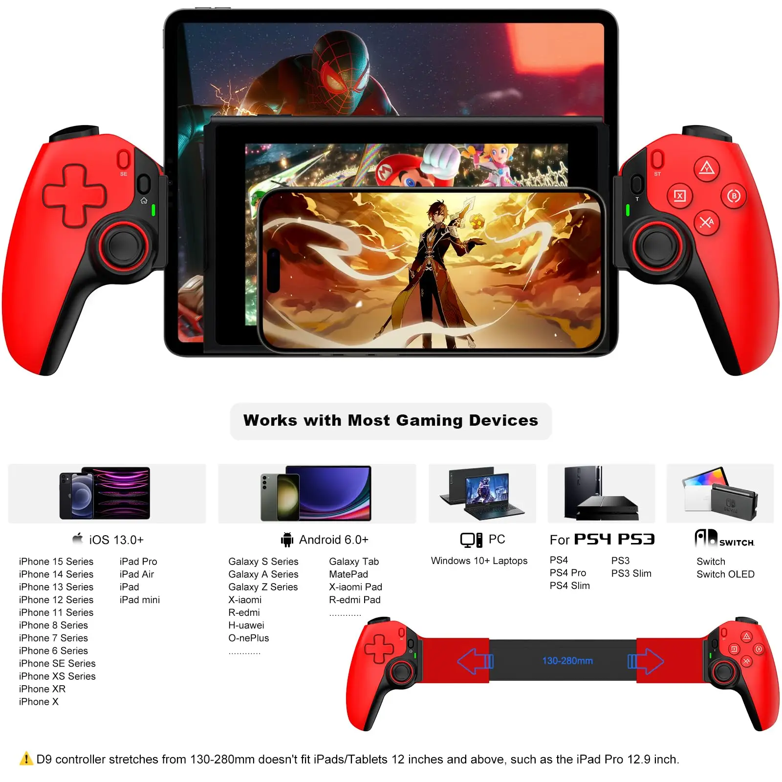 D9 블루투스 호환 게임 컨트롤러 iOS 안드로이드 모바일 게임패드 PS5 스트리밍 PS4 PC 스위치 홀 터보 포