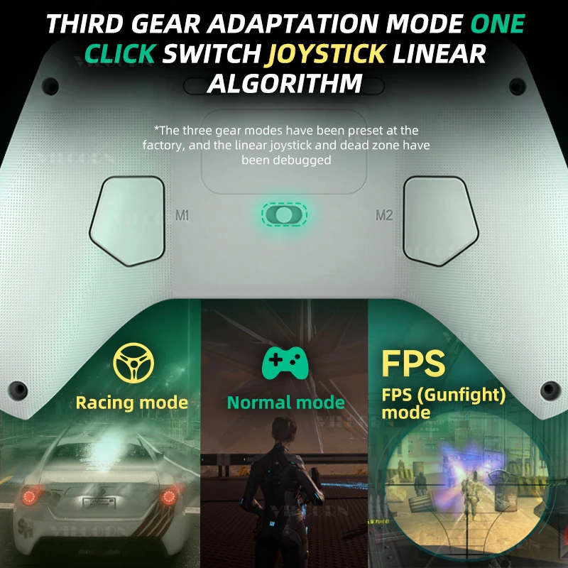 6. 3 개의 기어 적응 모드 (레이싱, 노멀, FPS), 조이스틱 선형 알고리즘을 전환하는 하나의 키.