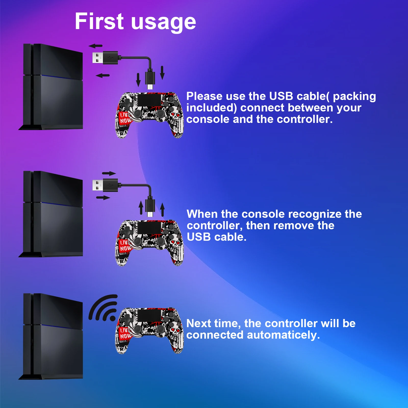 1) Please use the USB cable ( packing included ) connect between your console and the controller
