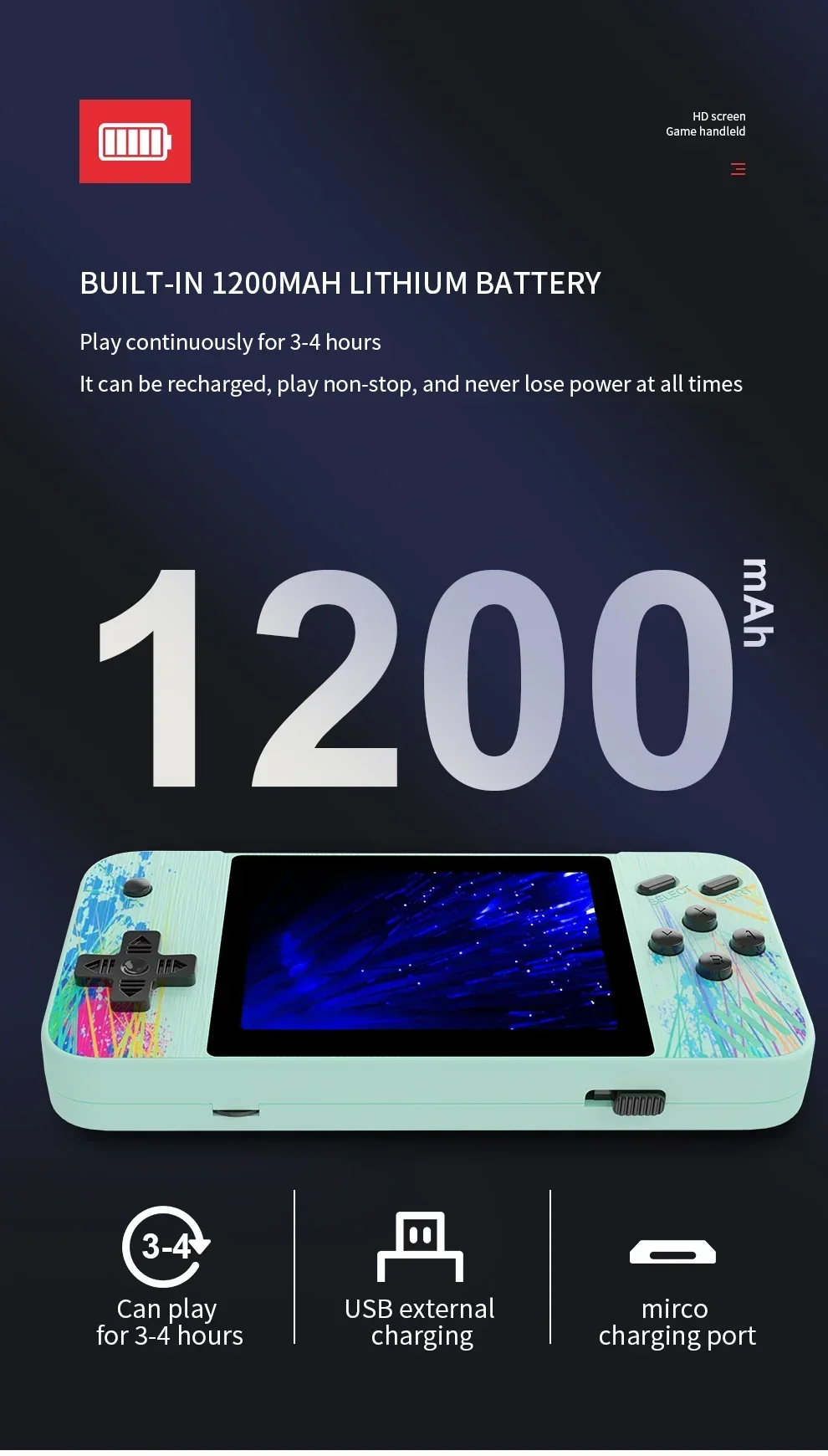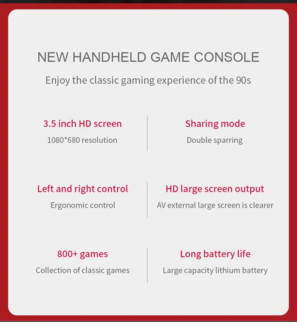휴대용 레트로 비디오 콘솔 보이 게임 플레이어 800 in 1 게임 낙서 HD 3.5 인치 1080680 해상도 컬러 스크