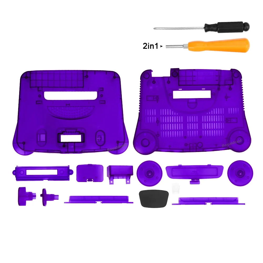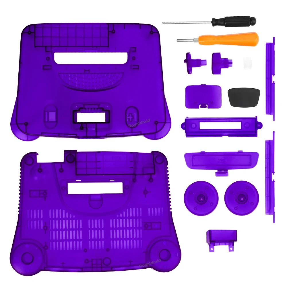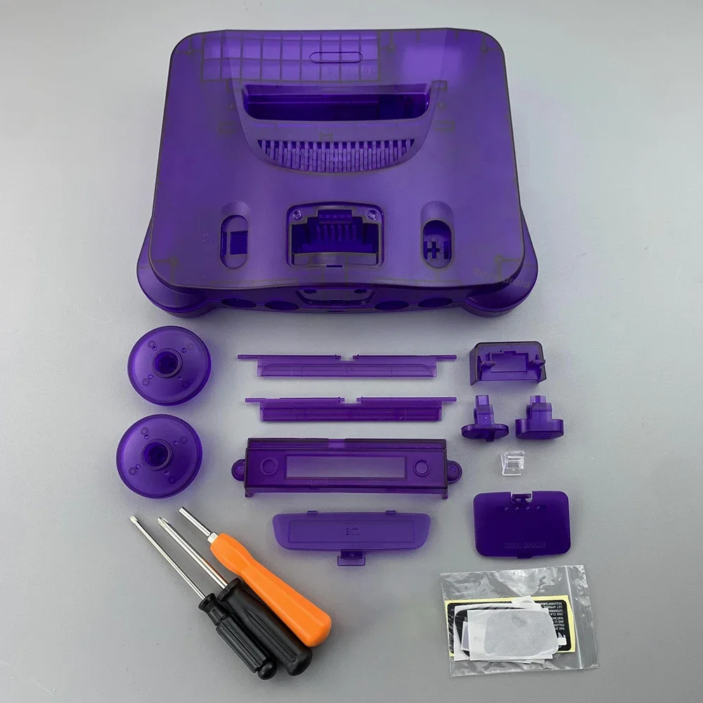 N64 레트로 비디오 게임 교체 하우징 쉘 반투명 케이스 N64 콘솔 액세서리 용 투명 오렌지 퍼플