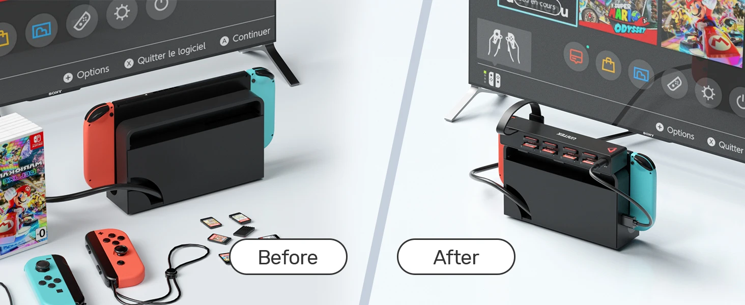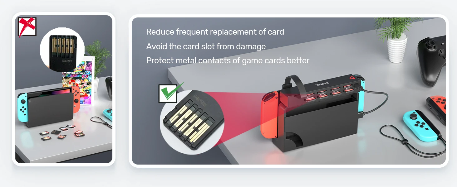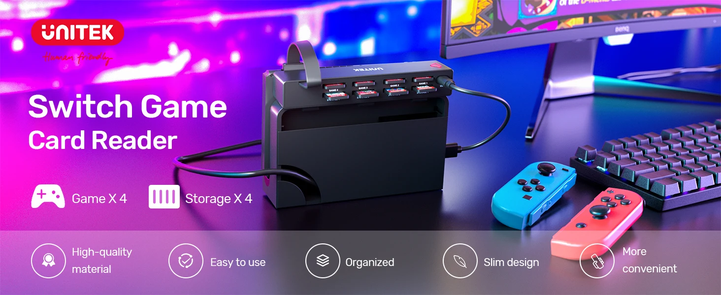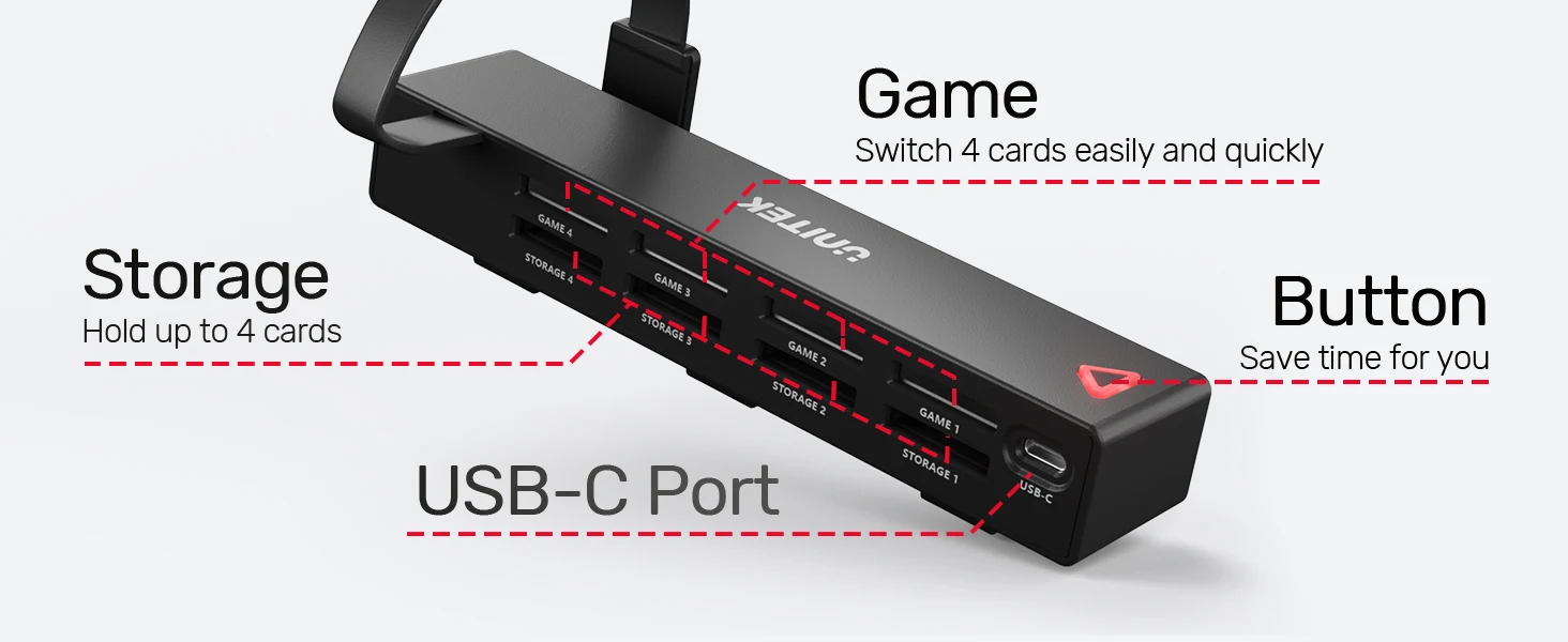 Unitek 닌텐도 스위치용 게임 카드 리더 OLED 어댑터 원 단추 스위칭 멀티 게임 스위처 액세서리 D1100A