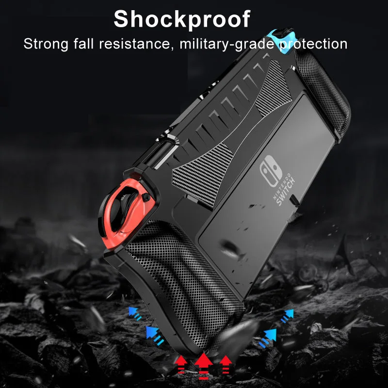 Nintendo Switch OLED 모델 2021 Joycon에 대한 부드러운 실리콘 쉘 탄소 섬유 질감 인체 공학적 그립 커버에 대한 보호 케이스