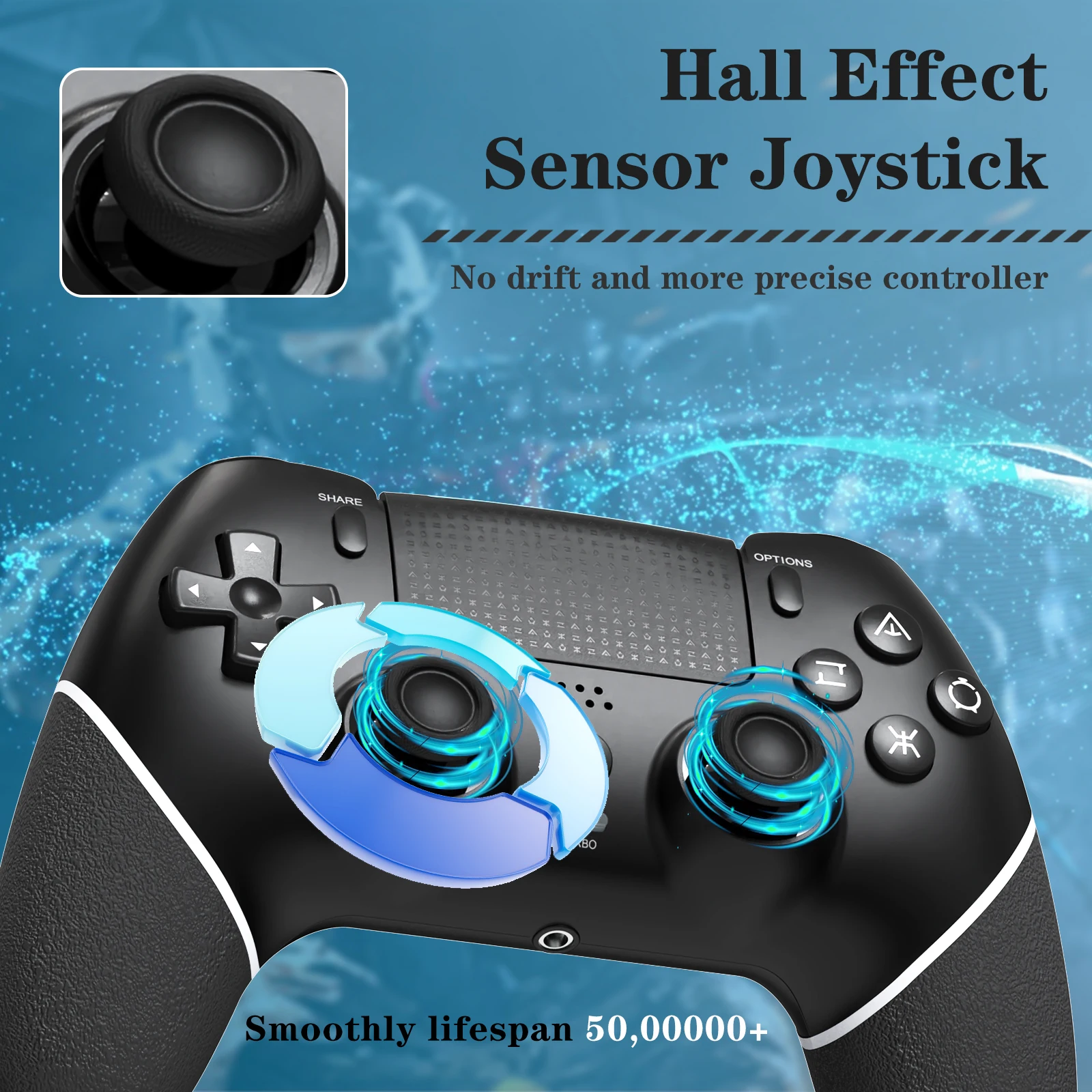 PS4 슬림 프로용 무선 게임 컨트롤러 홀 효과 조이스틱 터보 기능 블루투스 조이패드 액세서리
