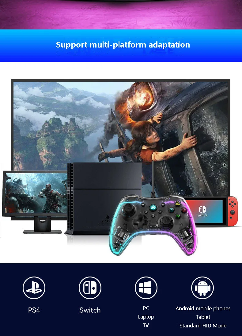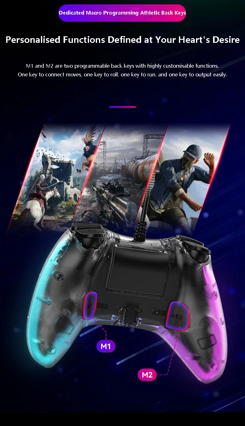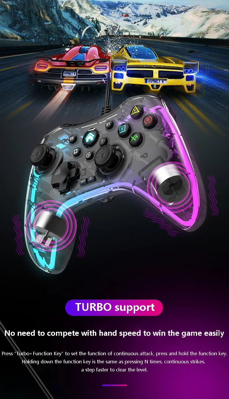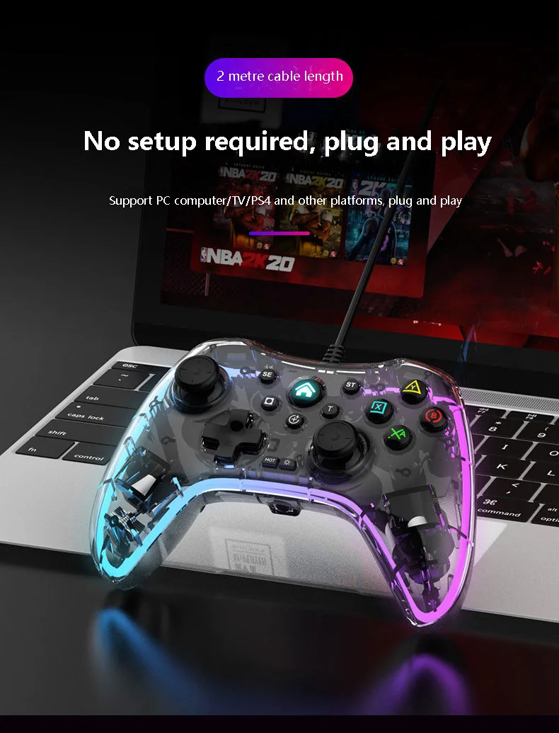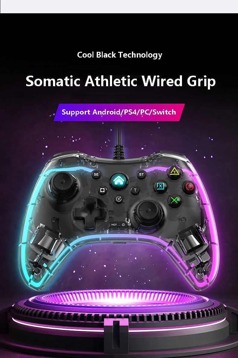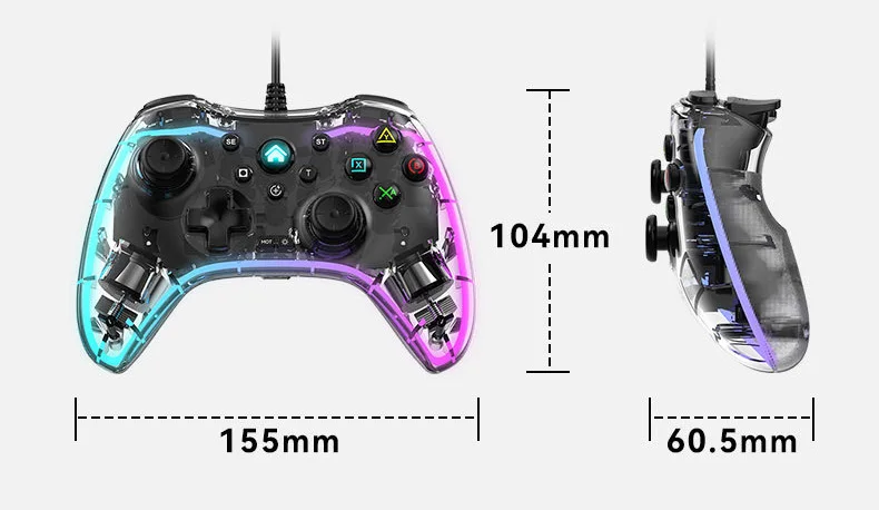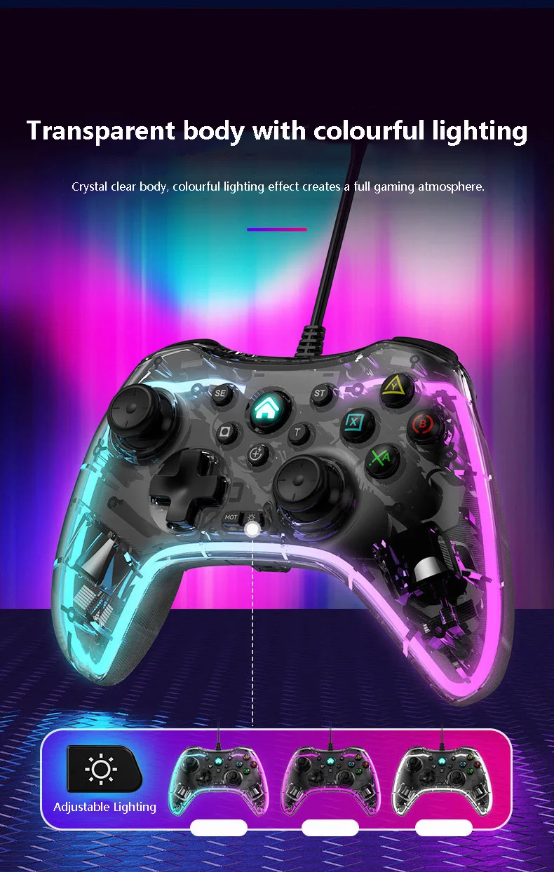 S03 유선 조명 게임 패드 RGB 조명 조명 게임 패드 지원 스위치/PC/PS4 컨트롤러
