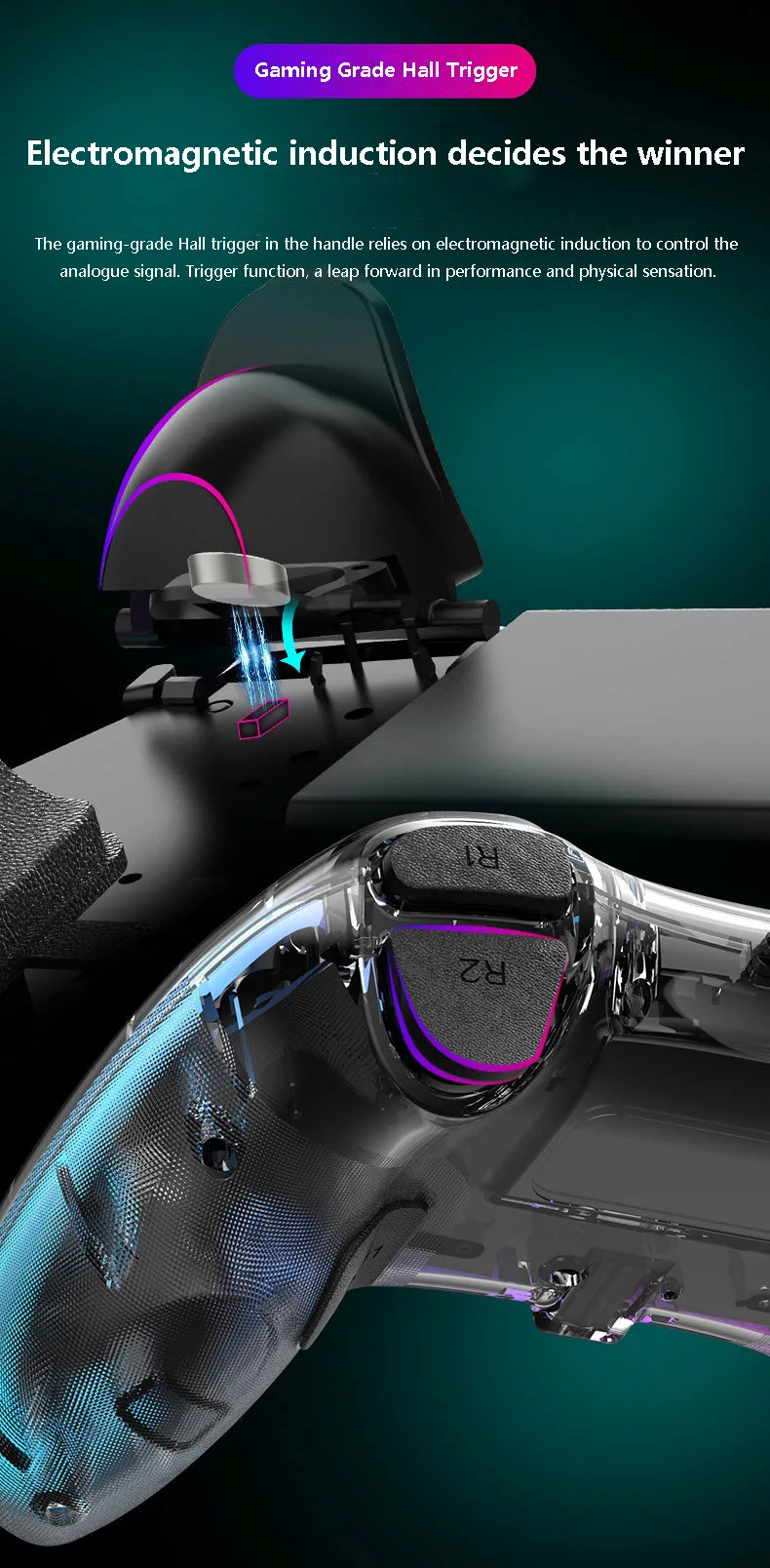 2: 게임 등급 홀 트리거, 게임 등급 홀 트리거 핸들 트리거 기능, 성능, 물리적 도약 감각을 달성하기 위해 아날로그 신호를 제어하는 전자기 유도 원리에 의존합니다.