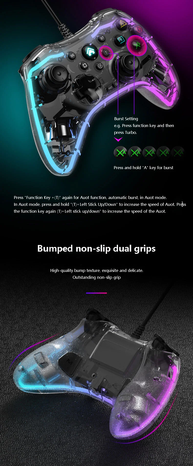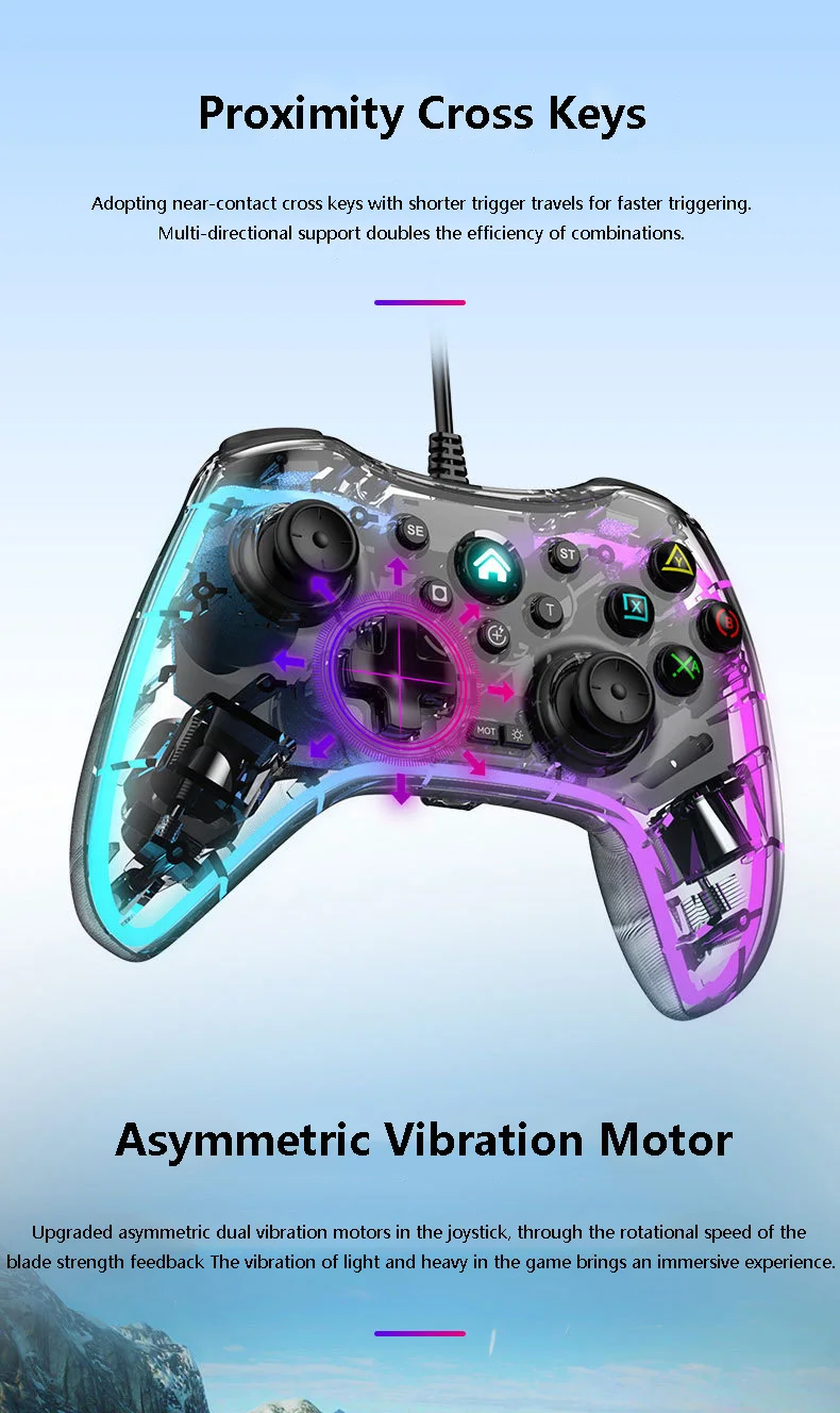 7: 업그레이드 된 핸들 비대칭 이중 진동 모터, 회전 속도 블레이드 강도와 피드백 게임의 약점, 가볍고 무거운 진동을 통해 몰입 형 경험을 제공합니다.