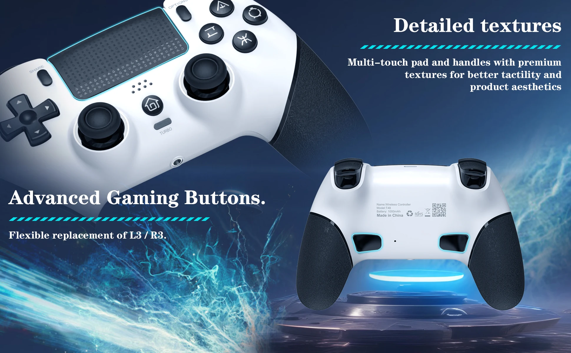 특징: 1. 인체공학적 디자인 및 내구성 소재: 우리의 게임 패드는 내구성이 뛰어난 ABS 소재로 제작되었으며 편안한 사용을 위한 인체 공학적 디자인이 특징입니다. 뛰어난 성능과 P4/for P4 Pro/for P4 Slim/PC와의 호환성으로 향상된 게임 경험을 원하는 게이머에게는 필수 아이템입니다. 2. 고급 홀 조이스틱 기술: 이 무선 컨트롤러는 홀 조이스틱의 최신 기술을 장착하여 표류나 지체 없이 최고의 게임 경험을 제공합니다. 정밀도와 신뢰성으로 모든 움직임이 정확하게 포착됩니다. 3. 몰입 형 게임 플레이를위한 풍부한 기능: 통합 스피커, 스테레오 헤드폰 잭, TURBO 기능, 이중 진동 및 6 축 자이로 스코프가있는이 게임 컨트롤러는 게임 세션을 풍부하게합니다. 프로그래밍 가능한 기능으로 맞춤형 게임 경험을 제공하여 열렬한 게이머에게 선호되는 선택입니다. 4. 호환성 및 다양성: 게임 컨트롤러는 P4 시리즈 콘솔과 완벽하게 호환 될뿐만 아니라 게이머가 P5 콘솔 용 P4 게임을 플레이 할 수 있습니다. 이 다양성은 다양한 콘솔 세대에 걸쳐 더 광범위한 게임 옵션을 제공하여 게임 경험을 향상시킵니다. 5. 쉬운 무선 연결: 이 콘솔 컨트롤러를 게임 설정에 연결하는 것은 간단합니다. Type-C 케이블을 사용하여 P4 용 콘솔에 연결하고 "HOME" 버튼을 누른 다음 사용자를 선택하기 만하면됩니다. 연결되면 컨트롤러의 라이트 바가 흰색으로 바뀌고 사용자가 확인하면 채널 표시등이 케이블을 분리하고 컨트롤러를 무선으로 사용할 수 있음을 나타냅니다. 사양: 원산지: 중국 본토 호환 가능한 브랜드/모델: Sony 용 트리거 버튼 유형: 선형 해당 모델: PS4/PS4 Pro/PS4 슬림/PC용 색상: 흰색/검정 및 흰색/검정 및 빨강/검정 및 파랑 (선택 사항) 소재: ABS 입력 전압: DC 5.0V 작동 전류: 45 mA 수면 전류: ≤ 20 uA 배터리 용량: 1000 mAh 사용 시간: 약 12 시간 충전 시간: 약 3 시간 진동 전류: 약 140 mA 충전 전류: 약 450 mA 데이터 케이블: Type-C 무선 연결 거리:<10 미터 제품 무게: 250g 제품 크기: 151.20x108.00x59.50mm/5.95x4.25x2.34inch 참고: