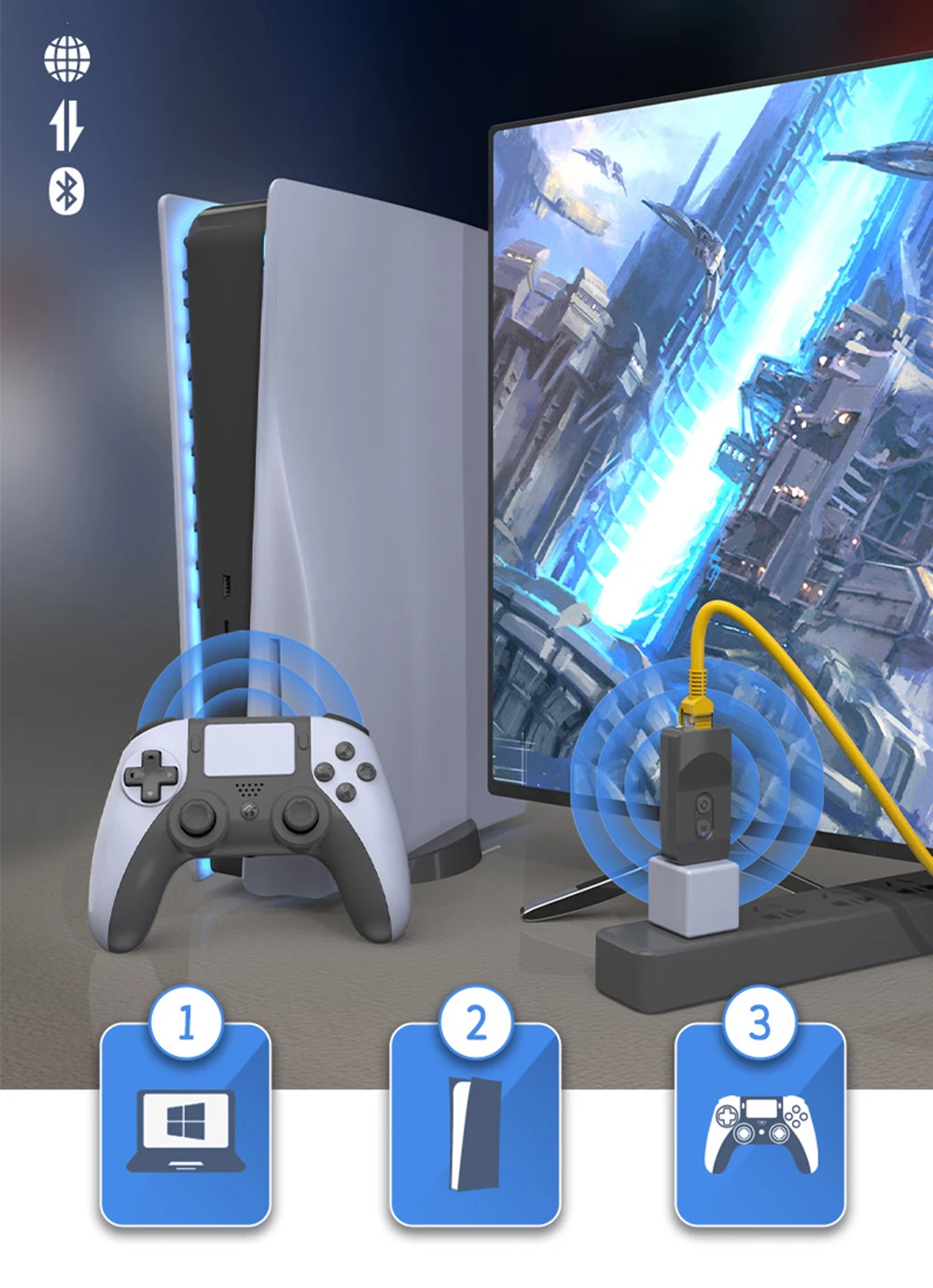 2. 【PS5 Wi-Fi 컨트롤러】 PS5 무선 컨트롤러에 대한 게임 경험을 향상 시키십시오. 원활한 Wi-Fi로 연결 상태를 유지하고 다양한 호환성을 즐기십시오.