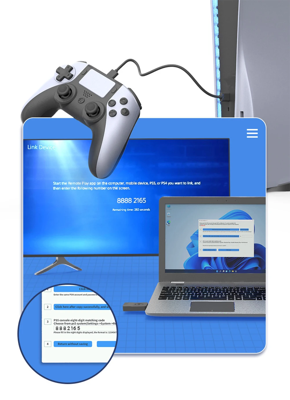 주의 사항: 첫 번째 설정이 성공한 후 PSN 계정 또는 WIFl이 변경되지 않은 경우 컨트롤러의 후속 사용을 다시 설정할 필요가 없습니다.