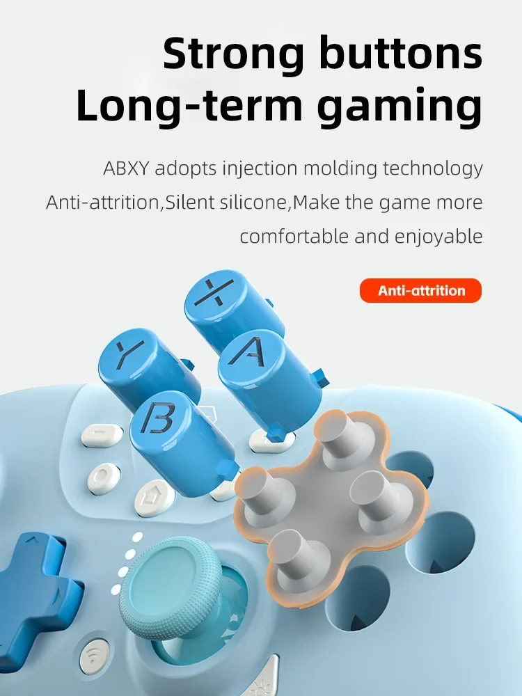 ABXY는 사출 성형 기술을 채택합니다. 안티 마멸, 사일런트 실리콘, 게임을 더 편안하고 즐겁게 만들어줍니다.