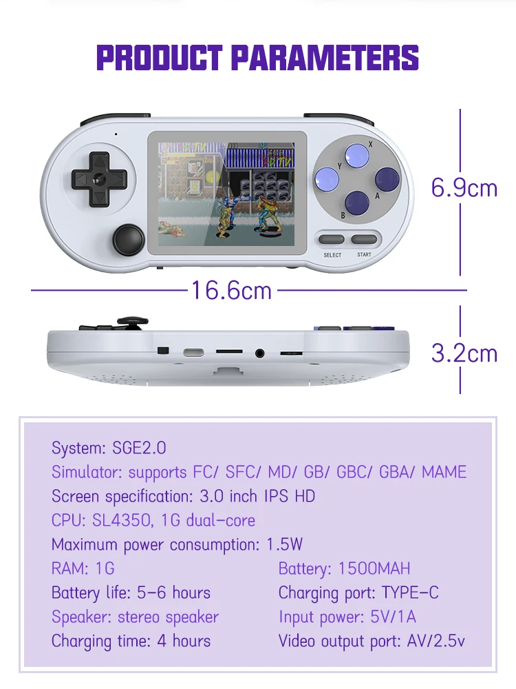 1.?With separate classic joysticks on the left side, the handheld gaming console provides a comfortable and immersive gaming experience. Whether you're playing action-packed games or classic arcade games, the 360° high precision rocker ensures that you're always in control.