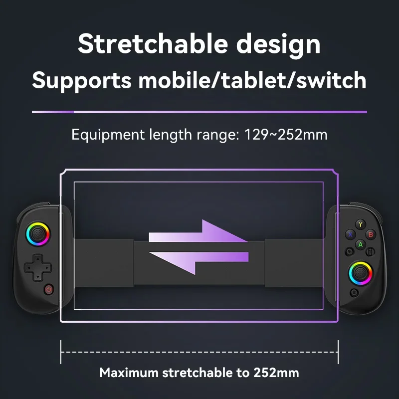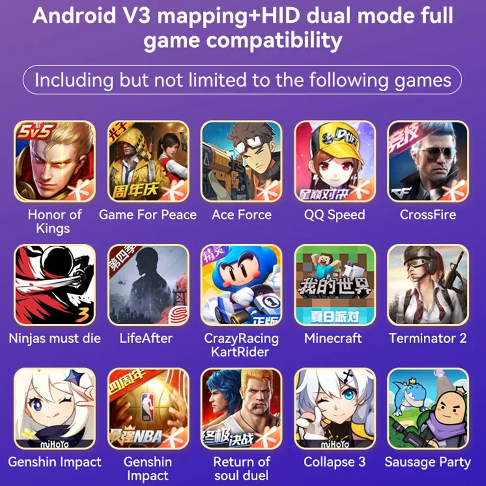 D8 텔레스코픽 무선 게임 컨트롤러 조이스틱 터보/6 축 자이로/진동 무선 게임 패드 조이스틱 Bluetooth-Compatible5.2 RGB 조명 안드로이드 iOS PS4 스위치 PC 특징: 1. 듀얼 홀 효과 트리거 + 조이스틱:왼쪽 및 오른쪽 홀 효과 3D 조이스틱을 장착하여 드리프트 문제없이 정확하고 반응 형 제어를 제공합니다. 표류 문제에 작별 인사를하고 정확한 위치와 부드러운 작동으로 안정적인 궤도를 유지하십시오. 홀 효과 트리거는 0.1mm 미만의 응답 간격 내에서 다단계 감도 변경을 제공하여 실제 게임 경험을 충실히 재현합니다. 다양한 경쟁/슈팅 게임에 적합하여 정확한 손가락 끝을 제어 할 수 있습니다. 2. 조이스틱의 놀라운 RGB 링 라이트:단색 모드, 다채로운 모드 및 사용자 정의 가능한 모드가 특징입니다. "T + L3 (왼쪽 조이스틱 누름)" 을 길게 눌러 조명 효과 사이를 전환합니다. 조명 효과 시퀀스에는 이 세 가지 모드를 순환하는 RGB 호흡, RGB 일시 정지 및 조명 해제가 포함됩니다. 몰입 형 e스포츠 분위기 조성. 3. 터보 급속 화재:TURBO 속사 기능을 지원하여 빠른 반사 신경에만 의존하지 않고 쉽게 이길 수 있습니다. 3 단계로 조절할 수있어 자동 터보 기능을 설정하여 슈팅 및 전투 게임에서 이점을 얻을 수 있습니다. "Turbo + Function" 버튼을 누르면 빠르고 효율적인 게임 플레이를 위해 여러 버튼 누름을 시뮬레이션하여 연속 발사가 가능합니다. 4. 여러 장치와 호환 가능:이 무선 게임 컨트롤러는 iOS 13.0 +, Android 6.0 + 및 Windows 10 시스템과 호환됩니다. 아이폰 15/14, 아이 패드, 삼성 갤럭시 및 기타에 적합 용안드로이드 스마트 폰/태블릿, PC/노트북. 5. 이중 진동 모터 및 6 축 자이로 스코프:이 무선 컨트롤러는 /PS4/SWITCH 게임 콘솔 용 Bluetooth 호환 연결을 지원하며 정확한 모션 제어를위한 내장 자이로 스코프가 있습니다. 이중 진동 모터는 탁월한 피드백을 제공하여 몰입감을 높이고 민감한 6 축 자이로스코프는 고정밀 방향 제어를 가능하게하여 게임에서 빠르게 반응하고 게임 경험을 향상시킵니다. 아날로그 트리거와 홀 효과 조이스틱을 사용하여 정사이즈 조이스틱에 비해 뛰어난 정확도를 제공합니다. 편안한 통합 D-패드와 신축성있는 디자인으로 인체 공학적으로 설계된이 제품은 휴대 가능하고 대형 화면 스마트 폰과 호환되므로 게임 플레이 중 안정성을 보장합니다. 129 mm에서 252 mm까지 조절 가능한 스트레칭 범위. 손잡이는 고밀도 질감의 미끄럼 방지 디자인을 채택했으며 입자가 고르게 분포되어 땀에 강합니다. 사양: 유형: 게임 패드 인증: CE 원산지: 중국 본토 호환 브랜드/모델: PC 인터페이스 유형: 블루투스 호환 호환 플랫폼: PC,IOS, 플레이 스테이션, 안드로이드 용 트리거 버튼 유형: 홀-선형 홀 효과: 예 제품 이름: RGB 듀얼 홀 휴대 전화 태블릿 스트레치 무선 게임 컨트롤러 제품 모델: BSP-D8 제품 색상: 검정, 흰색, 회색, 녹색과 파랑, 빨강 및 파랑, 핑크 (선택 사항) 연결 방법: 블루투스 호환 5.2 EDR/BLE 연결 블루투스 호환 전송 거리: <= 8M 작동 전압: DC3.7V 작동 전류: 약 10mA 연속 사용 시간: >20H 수면 전류: <5uA 충전 전압/전류: DC5V/500mA 배터리 용량: 400mAh 대기 시간: 완전히 충전 된 경우 60 일 지원되는 플랫폼: Android, iOS, , PS4, 스위치, PC용 제품 크기: 213*99*47mm/8.39x3.9x1.85inch 제품 무게: 200 그램 해당 지침: 1. 이 제품은 인체 공학적 디자인을 채택하여 편안함을 느낍니다. 2. 그것은 스트레치 및 수축 기능을 가지고 있으며 129 ~ 252 mm의 길이가 다른 휴대 전화를 늘리고 저장할 수 있습니다. 3. 블루투스 호환 5.2 EDR/BLE 연결을 사용하여 핸들은 블루투스 호환을 통해 휴대폰과 같은 다양한 호스트에 연결됩니다. 4. 다양한 모바일 애플리케이션 시장을 통해 다운로드 할 수있는 ShootingPlus V3 APP를 지원합니다. 5. 지원 용Android 및 Hongmeng HID 표준 모드이며 HID 표준 모드를 지원하는 다양한 게임 아케이드 게임을 즐길 수 있습니다. 6. Android 6.0 이상의 시스템에 대한 지원 (즉, 슈팅 플러스 V3 용안드로이드 모드). 7. iOS10.1 ~ 13.3.1 시스템에 대한 다중 터치 컨트롤 지원 (예: ShootingPlus V3 ios 모드); iOS13.4 이상의 시스템에서 단일 터치를 지원합니다. 8. iOS 13.0 이상의 시스템에 대한 MFi 게임을 지원합니다. MFi 게임은 ShanWan MFi 앱에서 다운로드 할 수 있습니다. 9. /PS4/SWITCH 게임 콘솔 지원 블루투스 호환 게임 연결, 자이로 스코프 기능이 있습니다. 10. Windows 10 시스템 노트북 지원 블루투스 호환 연결을 통해 X-Input 게임을 할 수 있습니다. 11. USB 케이블을 지원하며 PC//스위치 게임에서 재생할 수 있습니다. 12. 버튼에는 시원한 LED 백라이트가 있습니다 (버튼 백라이트를 켜거나 끄려면 L3 + 스위치 키를 동시에 누르십시오). 휴대 전화 시스템 문제로 인해 일부 휴대 전화는이 장치를 지원하지 않을 수 있습니다. 우리 회사는 공식 게임 플랫폼 소프트웨어 업그레이드 또는 소스 코드 변경과 같은 불가항력적인 이유로 인해이 제품과 일부 게임을 연결하고 작동 할 수없는 것에 대해 책임을지지 않습니다. 우리 회사는 이에 대한 최종 설명권을 보유합니다. 참고: D8 텔레스코픽 무선 게임 컨트롤러 조이스틱 터보/6 축 자이로/진동 무선 게임 패드 조이