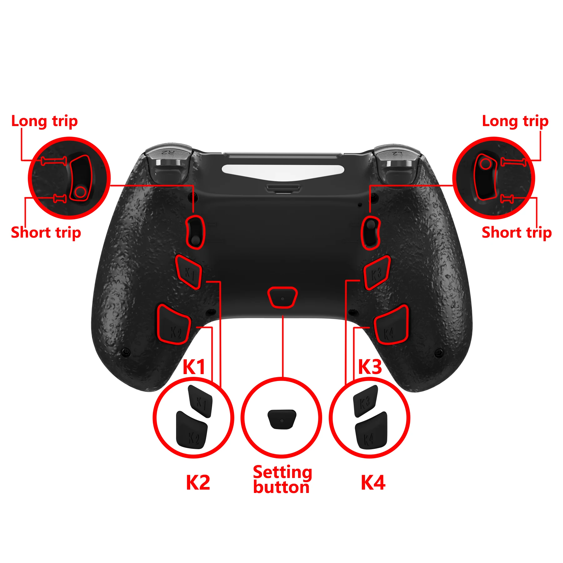 • 2, 4 개의 인체 공학적 백 버튼, 새로 업그레이드 된 버튼 컨트롤과 함께 게임에서 매핑 프로그램을 쉽게 활성화하고 백 버튼에 최대 15 개의 버튼을 할당 할 수 있습니다. 뒤로 버튼은 하나의 기능 버튼만 다시 매핑할 수 있으며, 하나의 기능 버튼은 여러 개의 뒤로 버튼으로 다시 매핑할 수 있습니다.