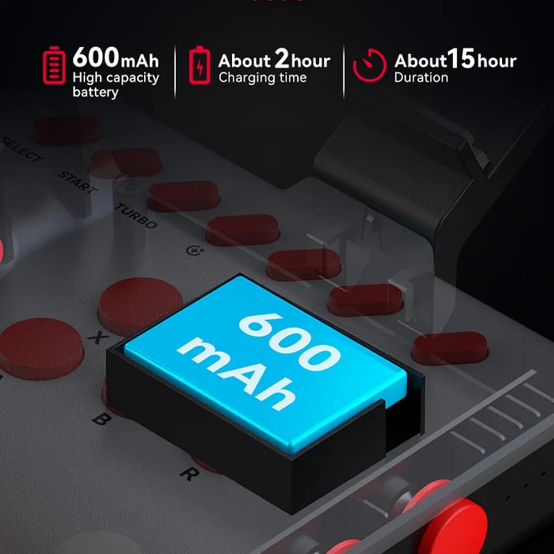 600mAh 대용량 배터리, 낮은 에너지 소비, 초장기 대기, 오래 지속되는 배터리 수명, 약 2 시간 충전, 약 15 시간 동안 지속적으로 작동 가능, 게임에서 배터리 문제를 제거 할 수 있습니다. 장시간 운송할 경우 배터리가 고갈될 수 있으므로 컨트롤러를 처음 충전해 주십시오.