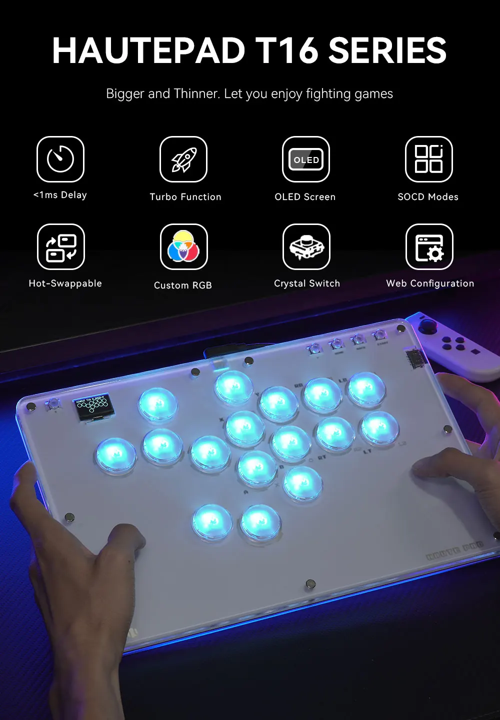 Huate42 T16-C 조이스틱 아케이드 히트 박스 컨트롤러 레버리스 아케이드 스틱 PC //Ps4/스위치 히트 박스 파이팅 스틱 컨트롤러