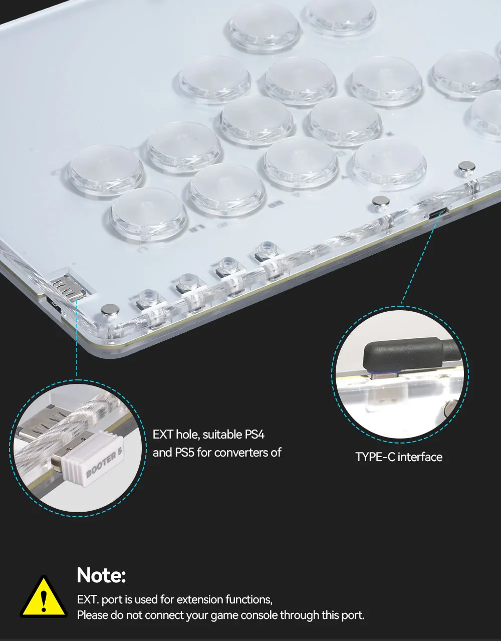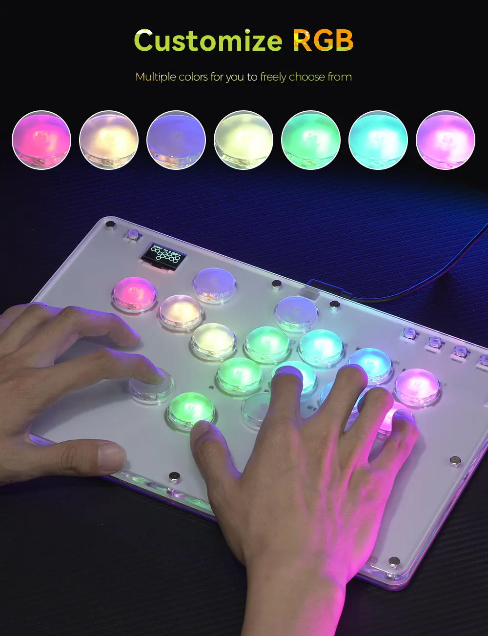 이것은 크리스탈 스위치로 만든 레버리스 컨트롤러로 완전히 흰색이며 완벽하여 저항 할 수 없습니다. RGB 조명 효과는 투명도가 뛰어나 게임에 몰입 할 수 있습니다.