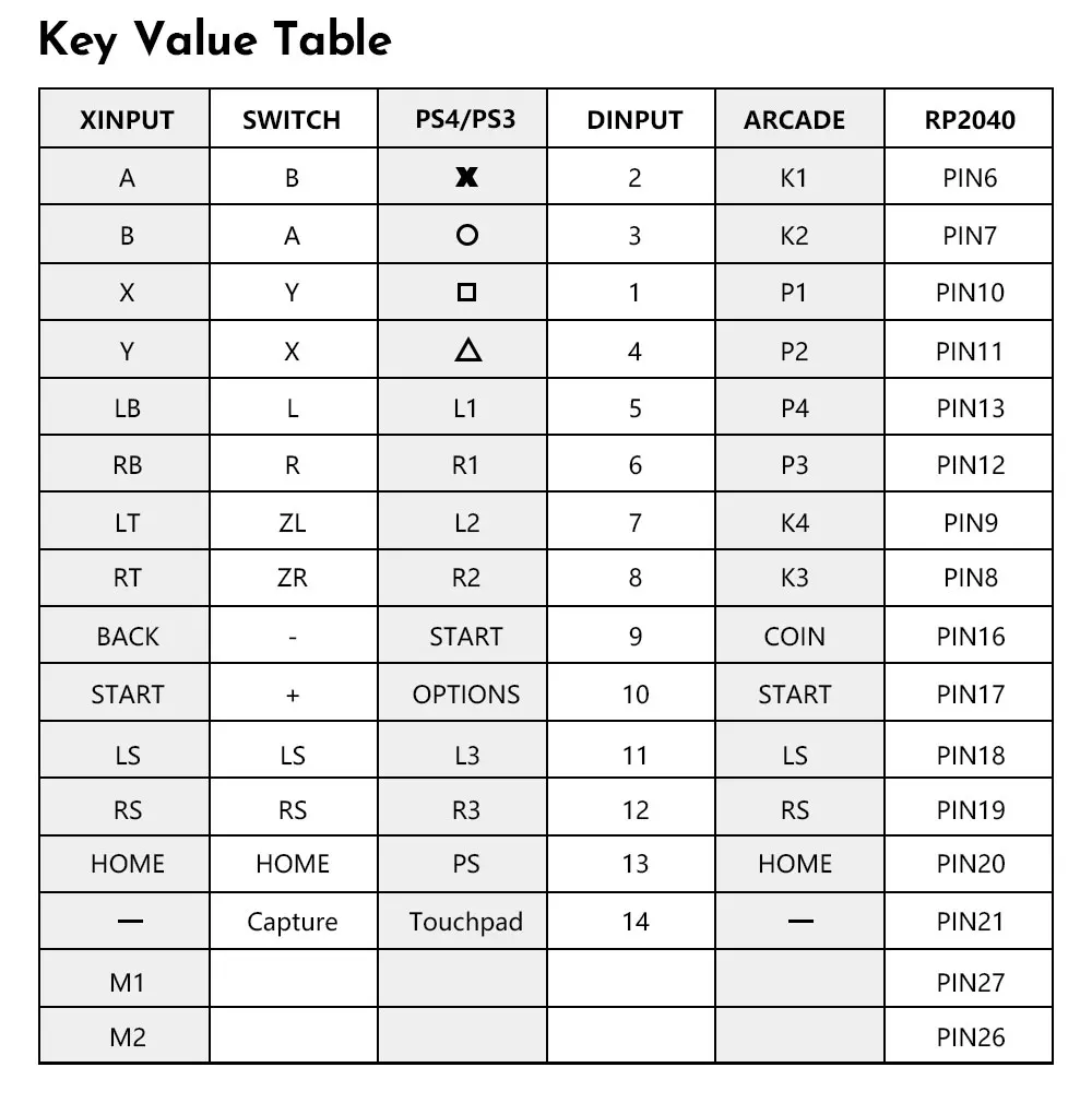 이 제품의 기본값은 Xinput 모드이며, 입력 모드는 전원 사이클 간에 저장됩니다.