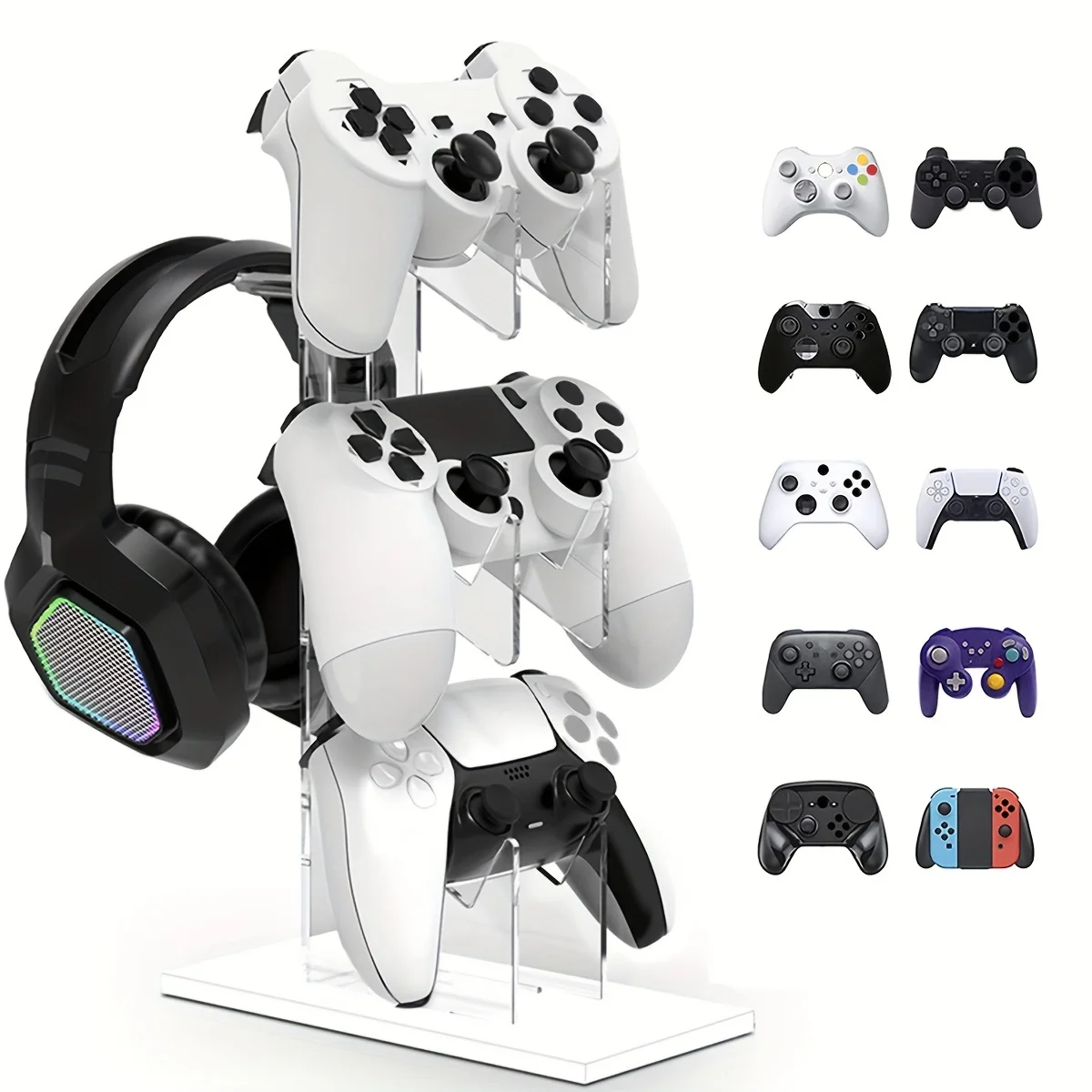 범용 3층 컨트롤러 보관대 및 헤드폰 보관대 게임용품 PS5 PS4 보관용 거치대 흑색 백색 투명