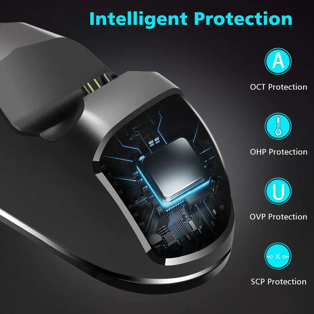 【PS4 컨트롤러용 지능형 칩 및 안전 충전기】 PS4 컨트롤러 충전소 내장 지능형 칩 과충전, 과전압, 단락 보호, ps4 무선 컨트롤러를 밤새 충전해도 걱정하지 않아도됩니다. 안전하고 안정적으로 ps4 / ps4 pro / ps4 슬림 컨트롤러를 충전하십시오.